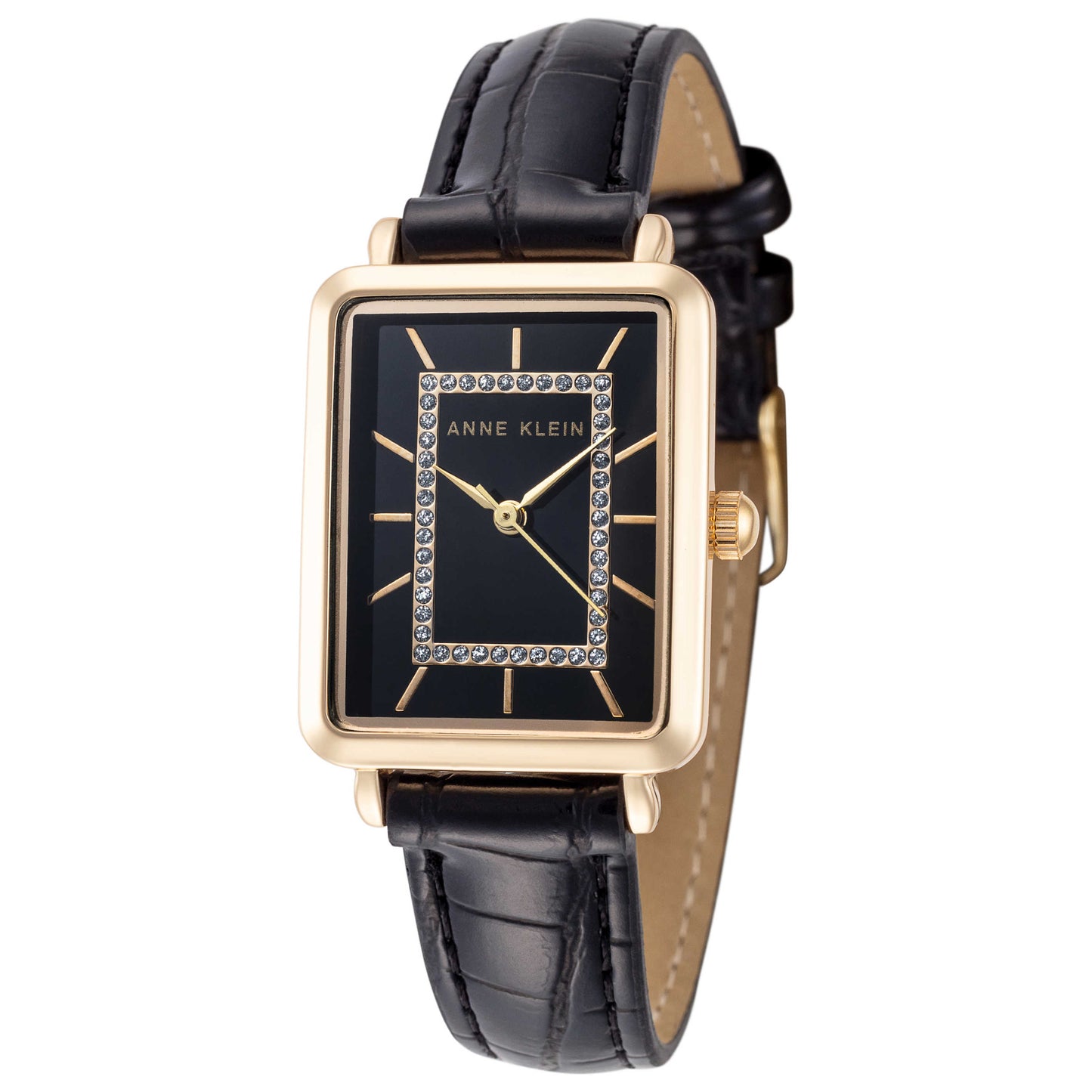 Anne Klein, Glitter Accent, Women's Watch, Stainless Steel Case, Leather Strap, Quartz, AK-3820GPBK