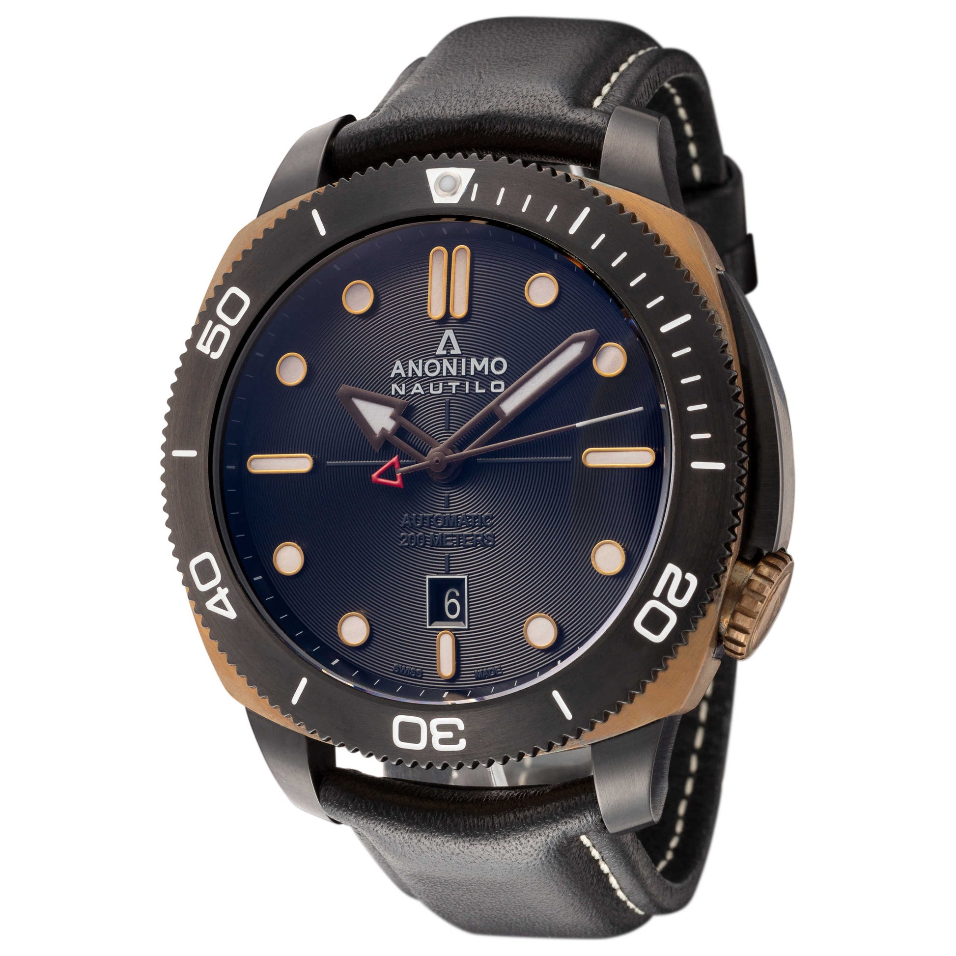 Anonimo, Nautilo, Men's Watch, Bronze DLC Coated Case, Leather Strap, Mechanical Automatic (Self-Winding), AM-1001-05-001-A11-BLKT