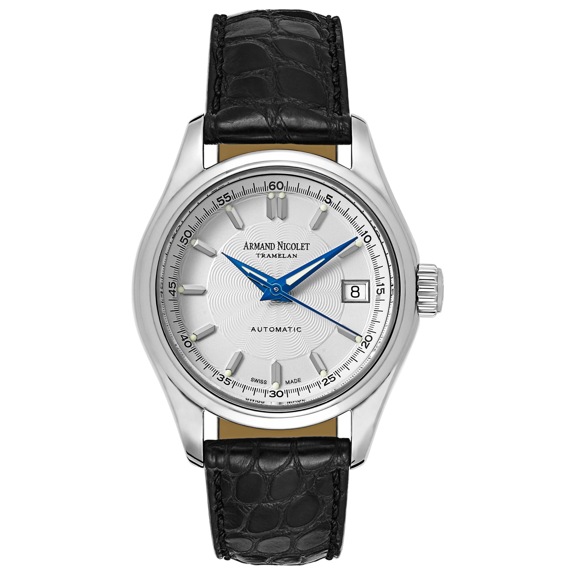 Armand Nicolet, Hunter Date, Men's Watch, Stainless Steel Case, Leather Alligator Strap, Swiss Mechanical Automatic (Self-Winding), 9040A-1-AG-P742NR9