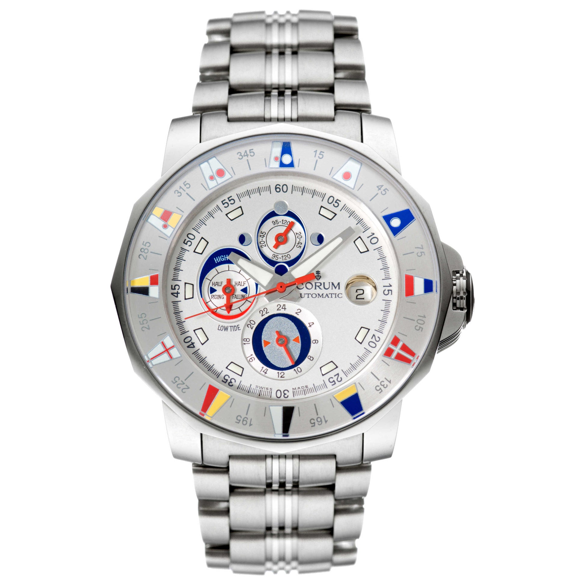 Corum, Admiral's Cup Tides, Men's Watch, Stainless Steel Case, Stainless Steel Bracelet, Mechanical Automatic Self-Winding Swiss Chronometer Movement, 977-630-20-V785-AA32