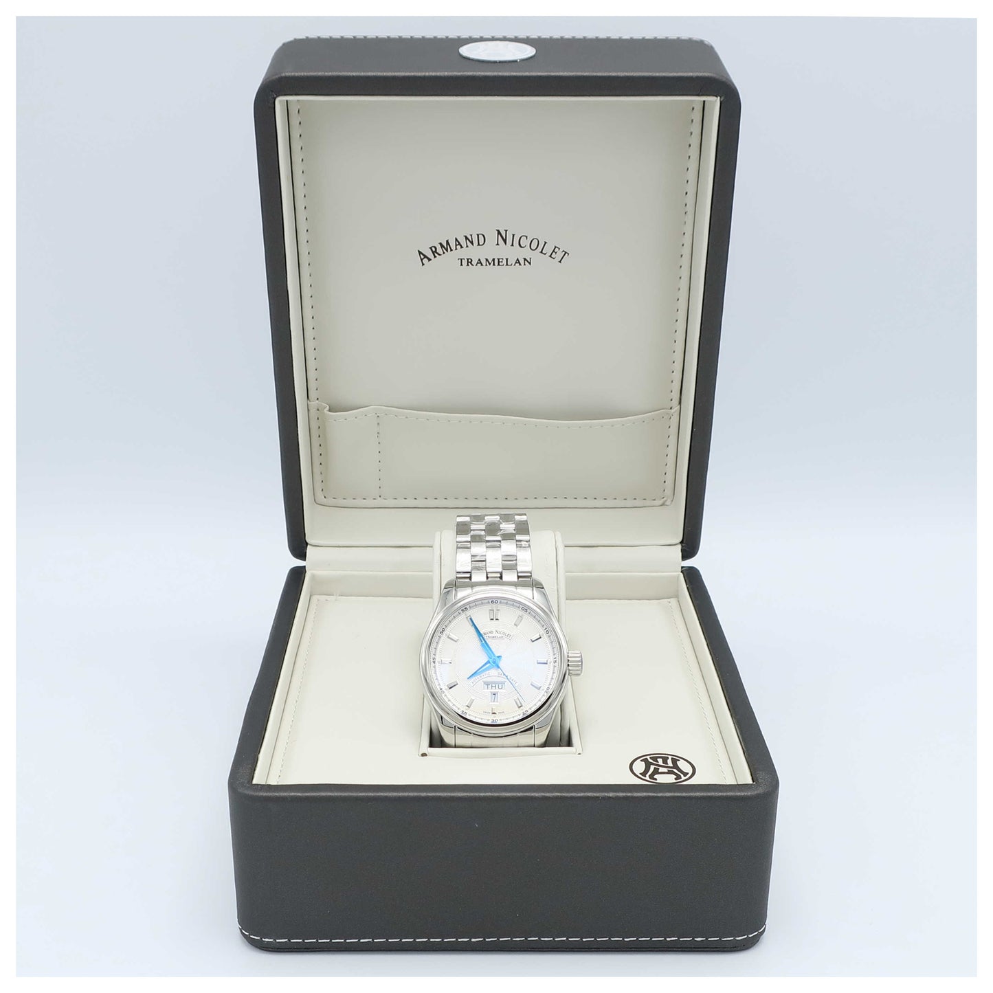 Armand Nicolet, M02, Men's Watch, Stainless Steel Case, Stainless Steel Bracelet, Swiss Mechanical Automatic (Self-Winding), 9640A-AG-M9140-SD