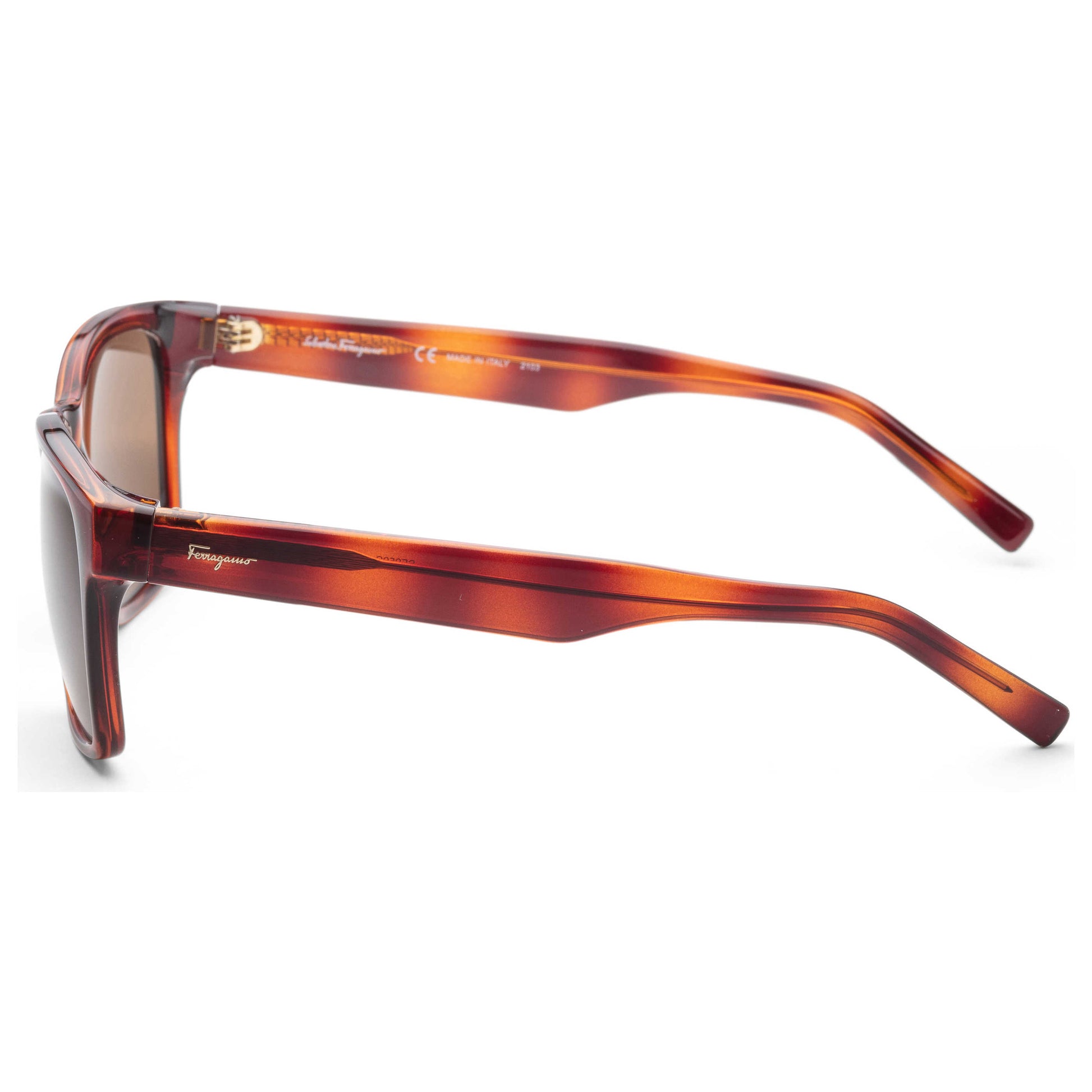 Dazzle in the Ferragamo women's sunglasses. Showcasing a brown plastic rectangular frame and a 55mm lens width, these glasses are sure to enhance your style. Equipped with brown lenses offering 100% UV protection, made in Italy. SF959S-5518214