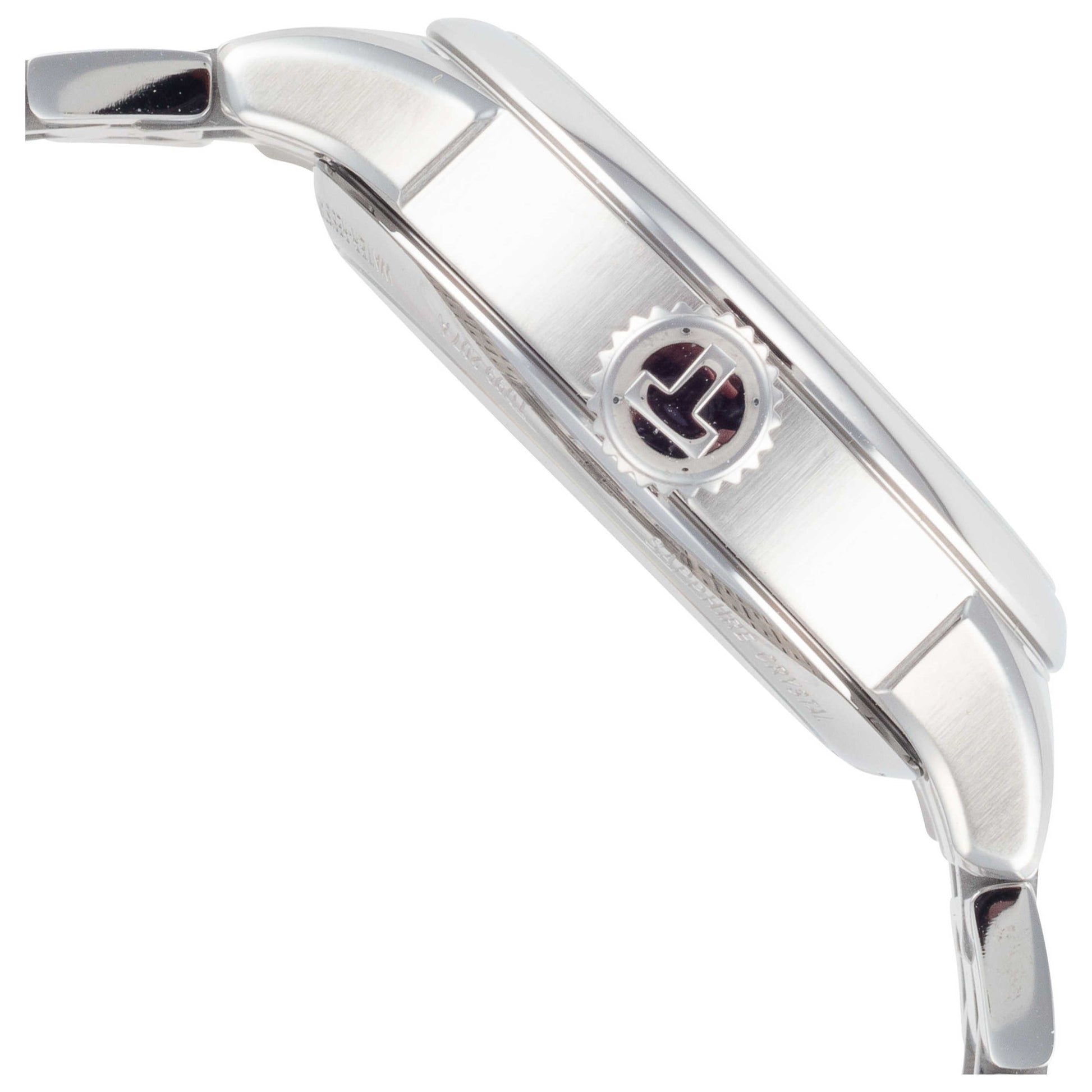 Add a touch of luxury to your ensemble with the Tissot T-Classic women’s watch. A 32mm round stainless steel case sports a white mother of pearl dial with a unique textured outer dial. Silver tone Roman numeral hour markers grace the quarter hour positions while stick hour markers sit at the remaining hour positions. Equipped with scratch resistant sapphire crystal and a date display at the 6 o’clock position, this stunning timepiece is packed with useful features. A Powermatic 80.111 automatic movement ensures accurate timekeeping with its 80 hour power reserve. The exhibition case back offers a front row seat to Swiss precision at work. Water resistant to 50 meters, up to 165 feet, the Tissot T-Classic ladies’ watch sports a silver tone stainless steel bracelet.