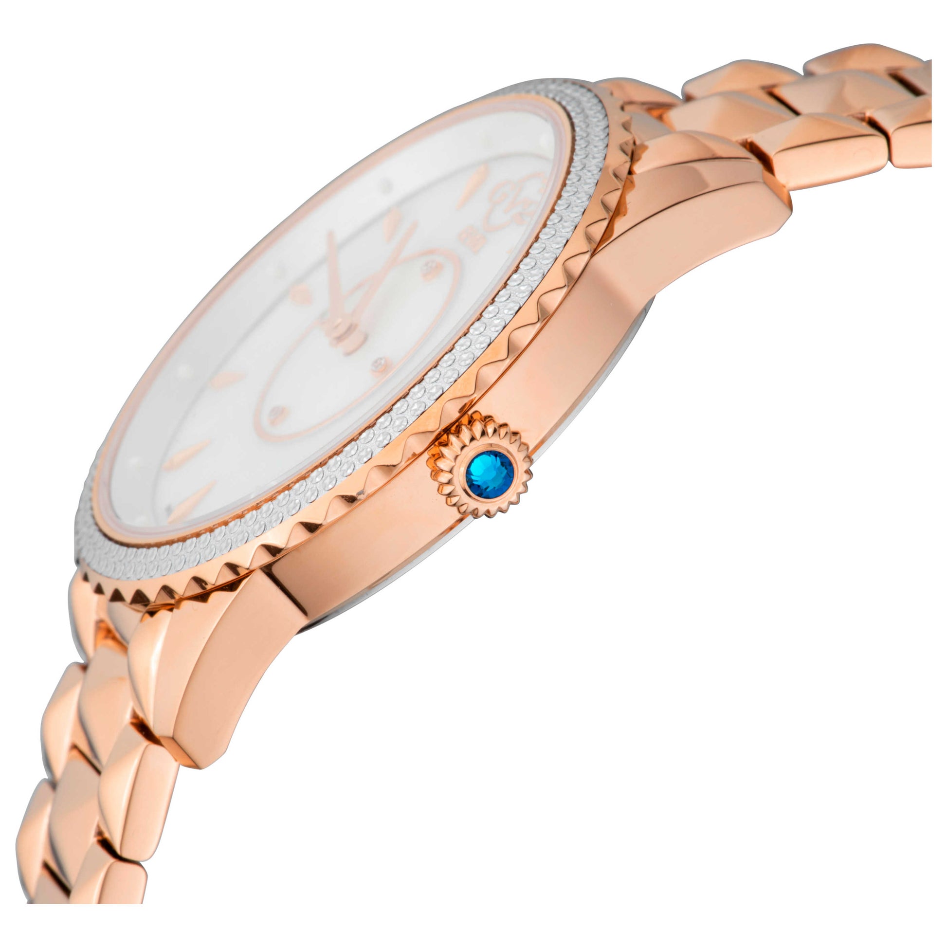Immerse yourself in luxurious elegance with the GV2 by Gevril Siena women's watch. This made in Switzerland timepiece features a Swiss-made quartz movement and is set within a round 38mm stainless steel case. Its white mother-of-pearl dial peeks beautifully under an anti-reflective, scratch-resistant sapphire crystal. The pull and push crown, coupled with a 30m water resistance, ensures the longevity of this piece. Complementing the case is a rose gold stainless steel bracelet, securely fastened by a deployment clasp. Let the allure of this Swiss marvel enhance your refined style. 11701-929