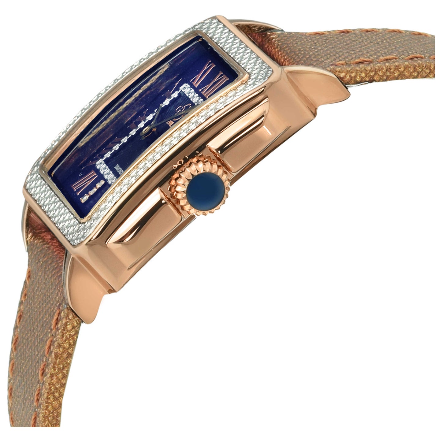 Elevate your style with the women's GV2 by Gevril Padova watch, a striking Swiss-made accessory. This rectangular quartz timepiece is built with a durable 30mm stainless steel case, featuring a vibrant blue dial safely encased under anti-reflective, scratch-resistant sapphire crystal. With its pull and push crown, you can adjust the time effortlessly while maintaining its water resistance of up to 30m. The brown leather strap adds a touch of classic sophistication, securely fastening with a pin buckle for your comfort and convenience. This meticulously crafted watch exudes the Swiss-made quality Gevril is known for. 12300