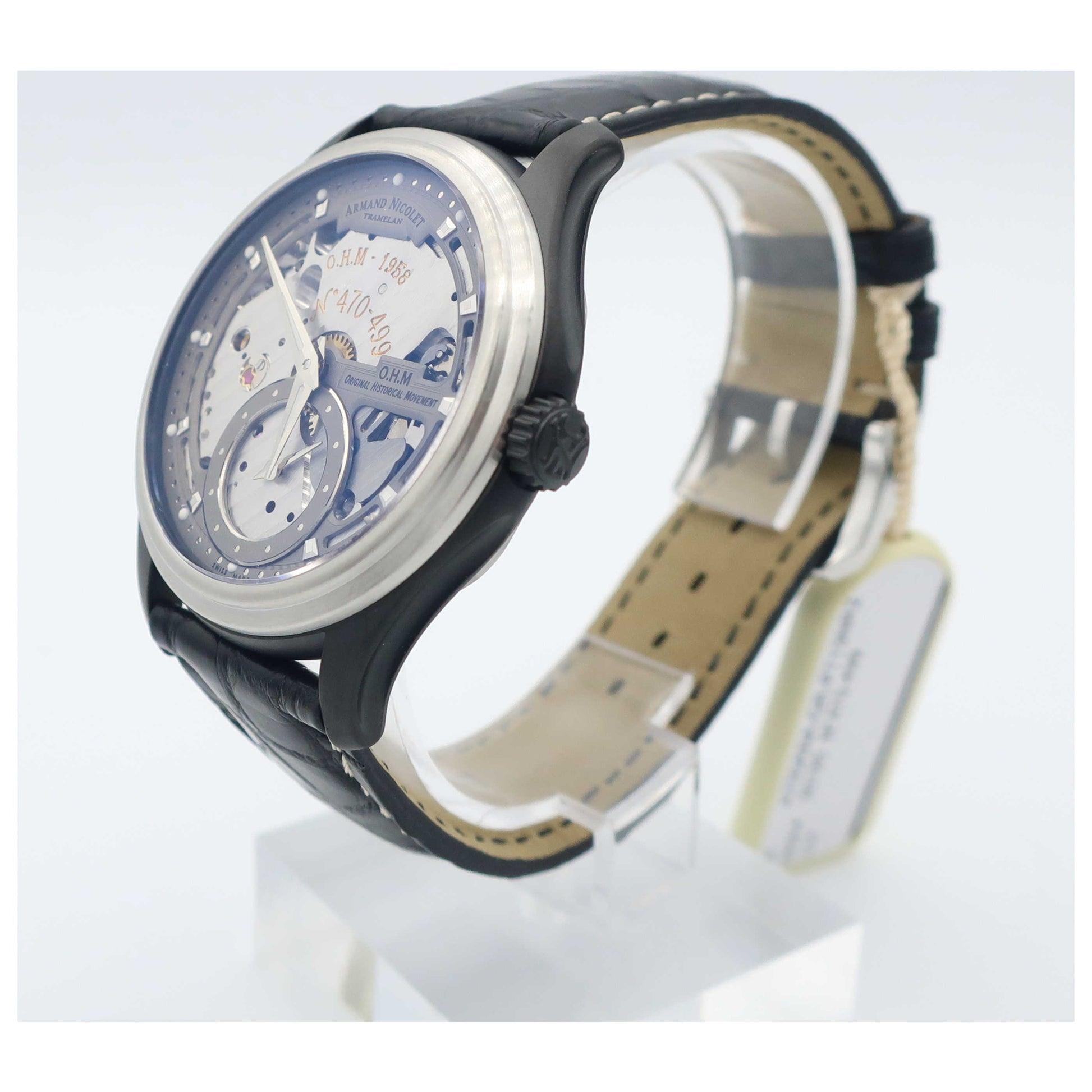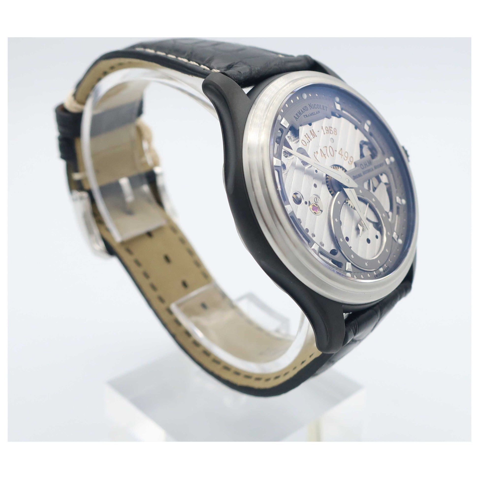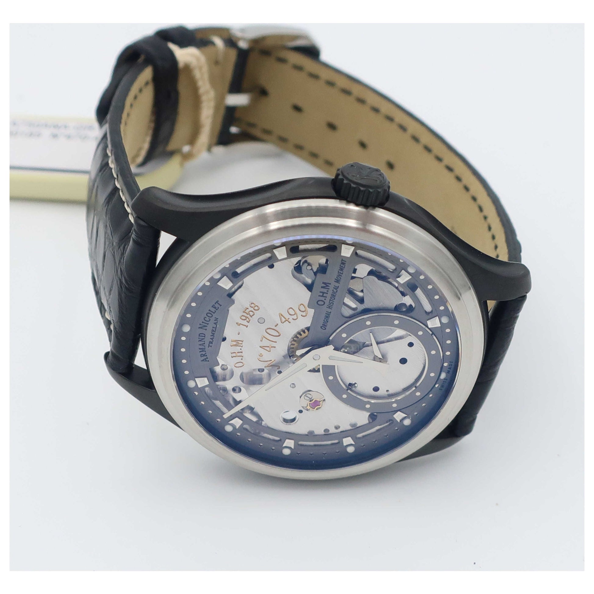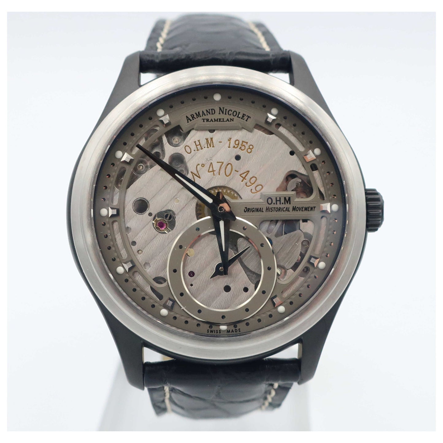 Armand Nicolet, L14, Men's Watch, Stainless Steel and Black DLC Coating Case, Leather Alligator Strap, Swiss Mechanical Manual (Hand-Winding), A750ANA-GRP713NR2-SD