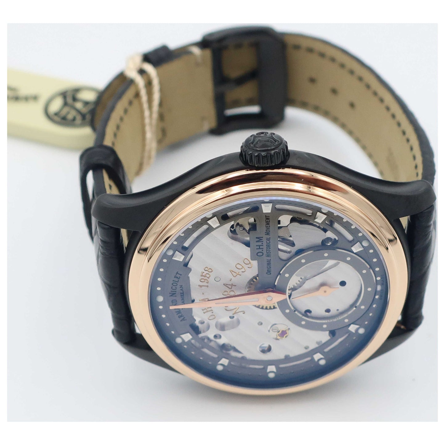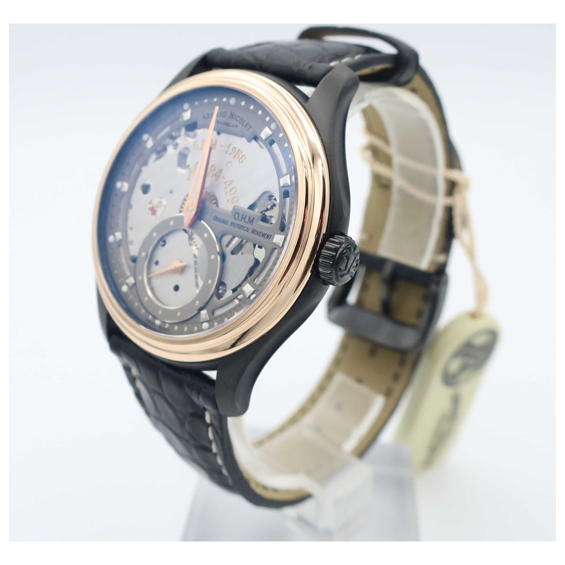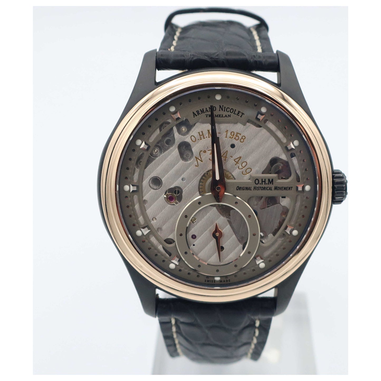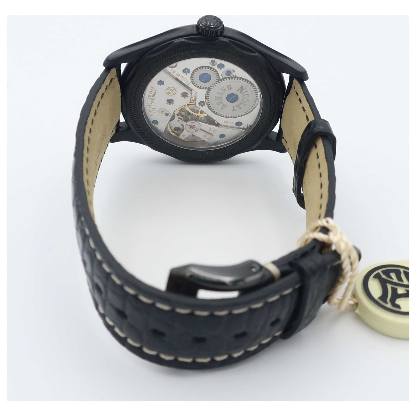 Armand Nicolet, L14, Men's Watch, Stainless Steel Black DLC Coating Case, Leather Alligator Strap, Swiss Mechanical Manual (Hand-Winding), D750ANA-GRP713NR2-SD