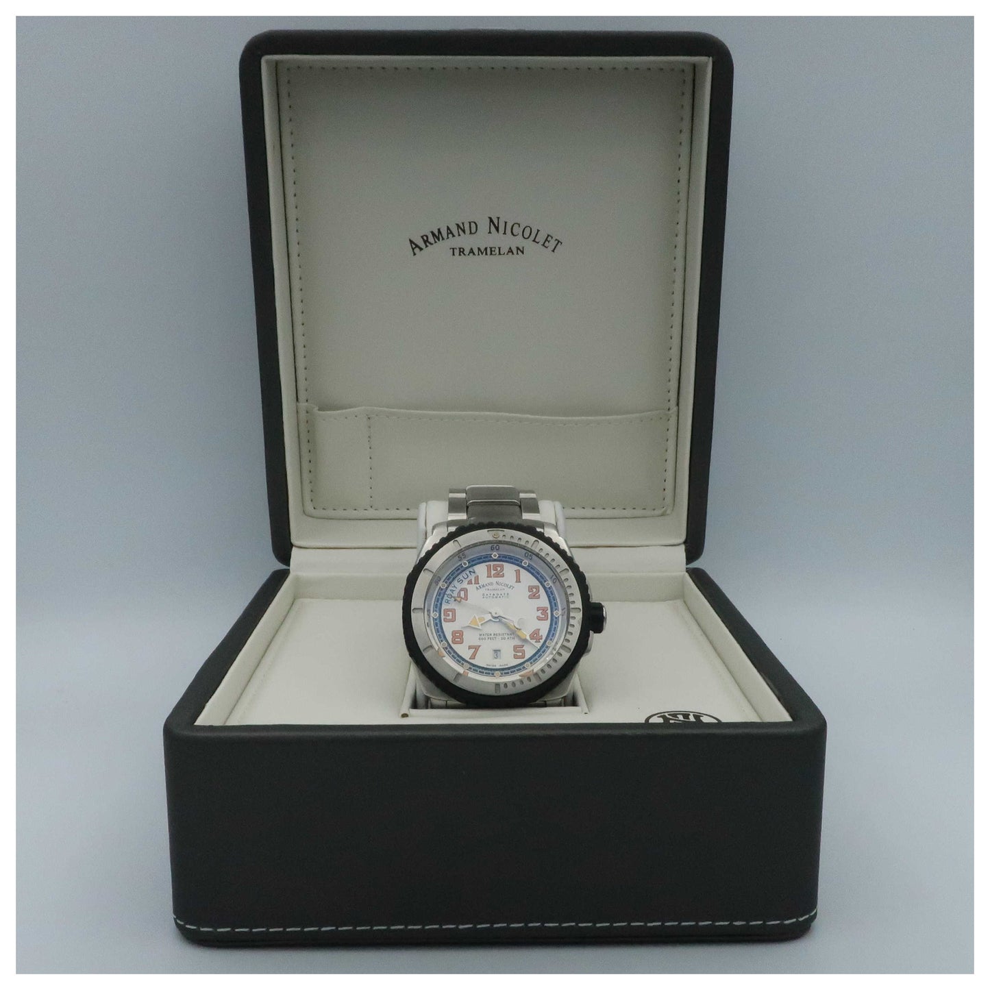 Armand Nicolet, S05, Men's Watch, Stainless Steel Case, Stainless Steel Bracelet, Swiss Mechanical Automatic (Self-Winding), 9160G-AG-M9168-PO