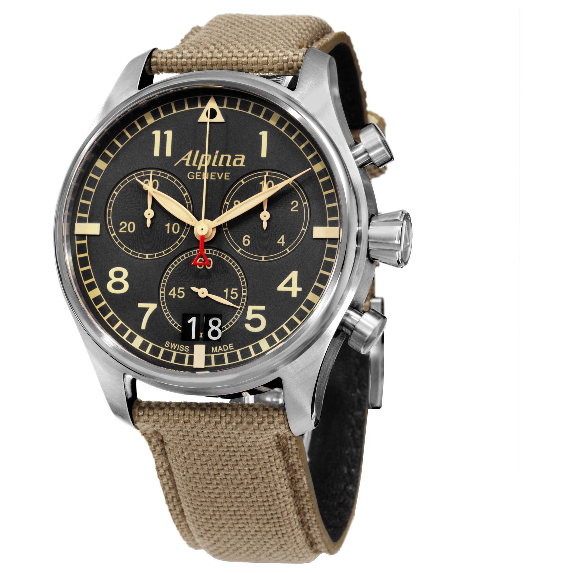 Alpina, Startimer Pilot, Men's Watch, Stainless Steel Case, Leather Strap, Quartz, AL372BGR4S6