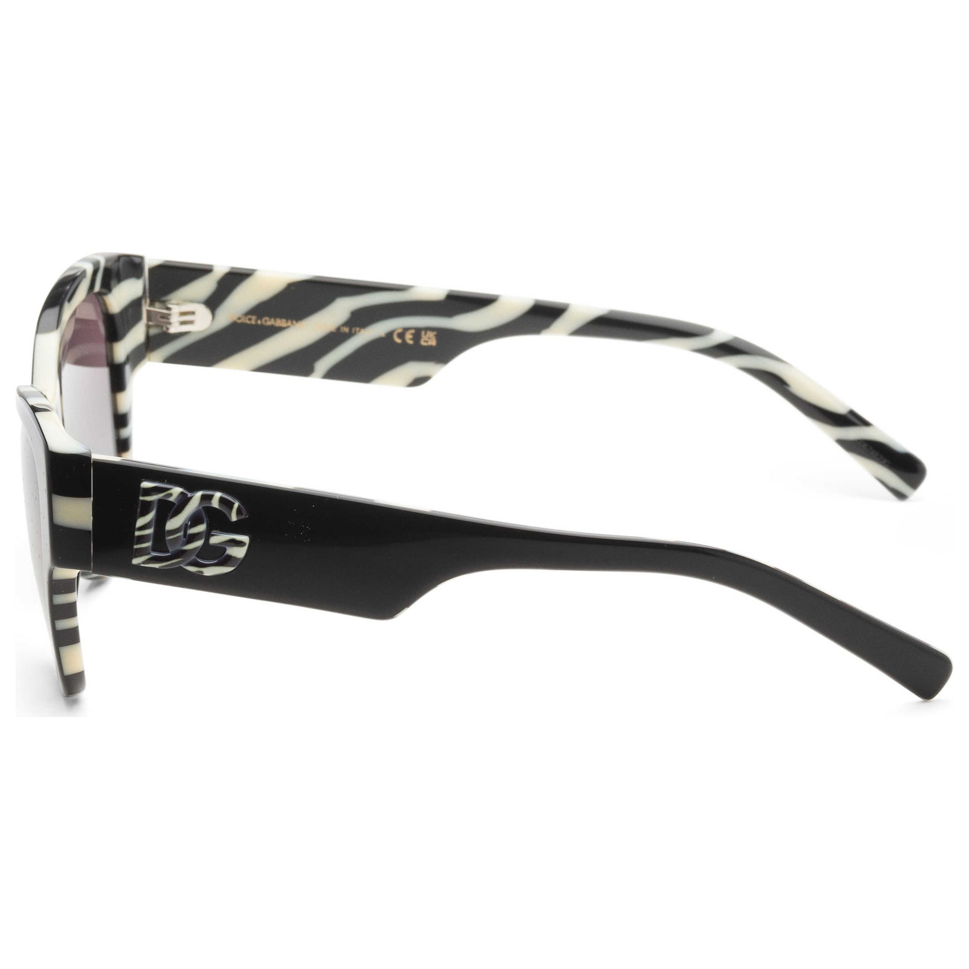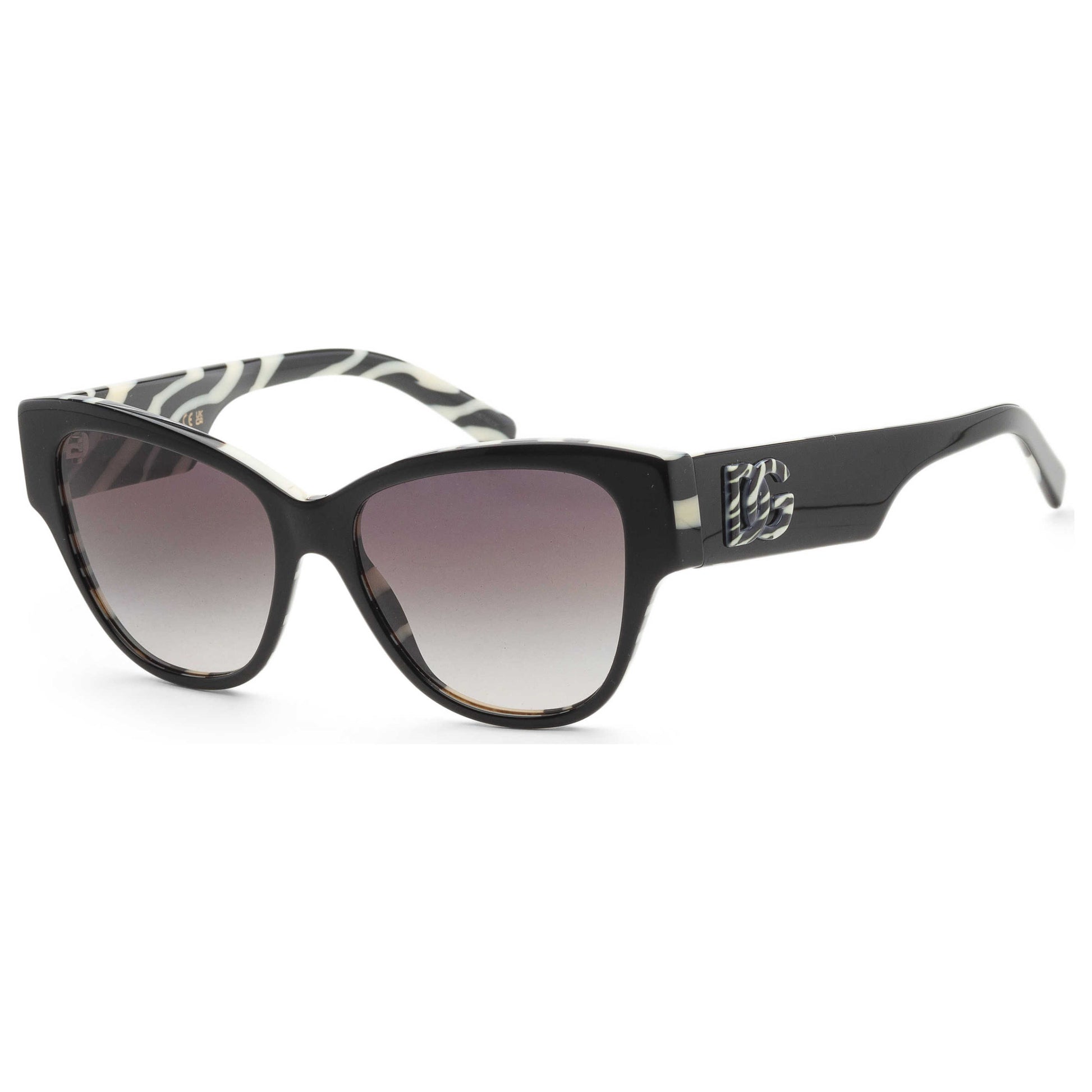 Immerse in luxury with Dolce & Gabbana women's sunglasses, a masterstroke of design and Italian craftsmanship. With a black-on-zebra acetate frame in an alluring butterfly shape, these shades feature dark grey Tampo Tigre Silver lenses, boasting a 54mm lens width and 100% UV protection. Experience unmatchable elegance and absolute sun defense. DG4449-3372-P-54