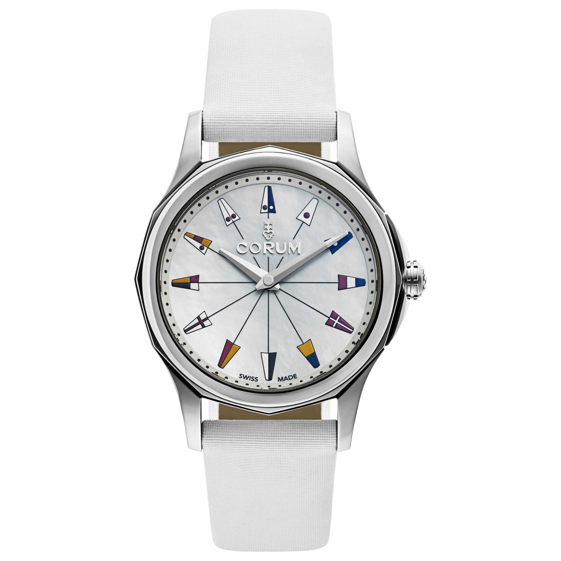 Corum, Admiral's Cup Legend 32, Women's Watch, Stainless Steel Case, Satin Over Leather Strap, Swiss Quartz (Battery-Powered), 020-100-20-0049-PN22