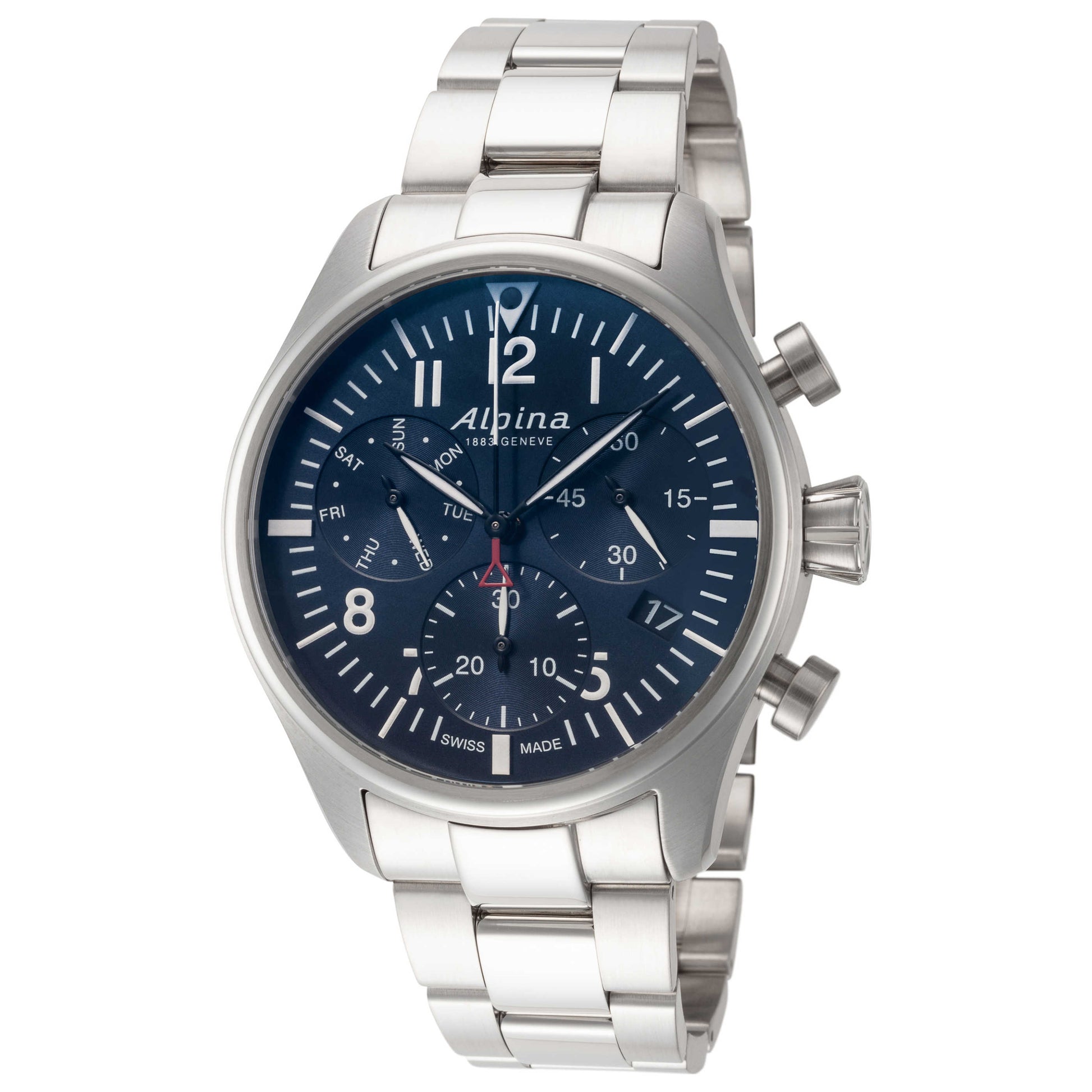 Alpina, Startimer Pilot, Men's Watch, Stainless Steel Case, Stainless Steel Bracelet, Quartz, AL-371NN4S6B