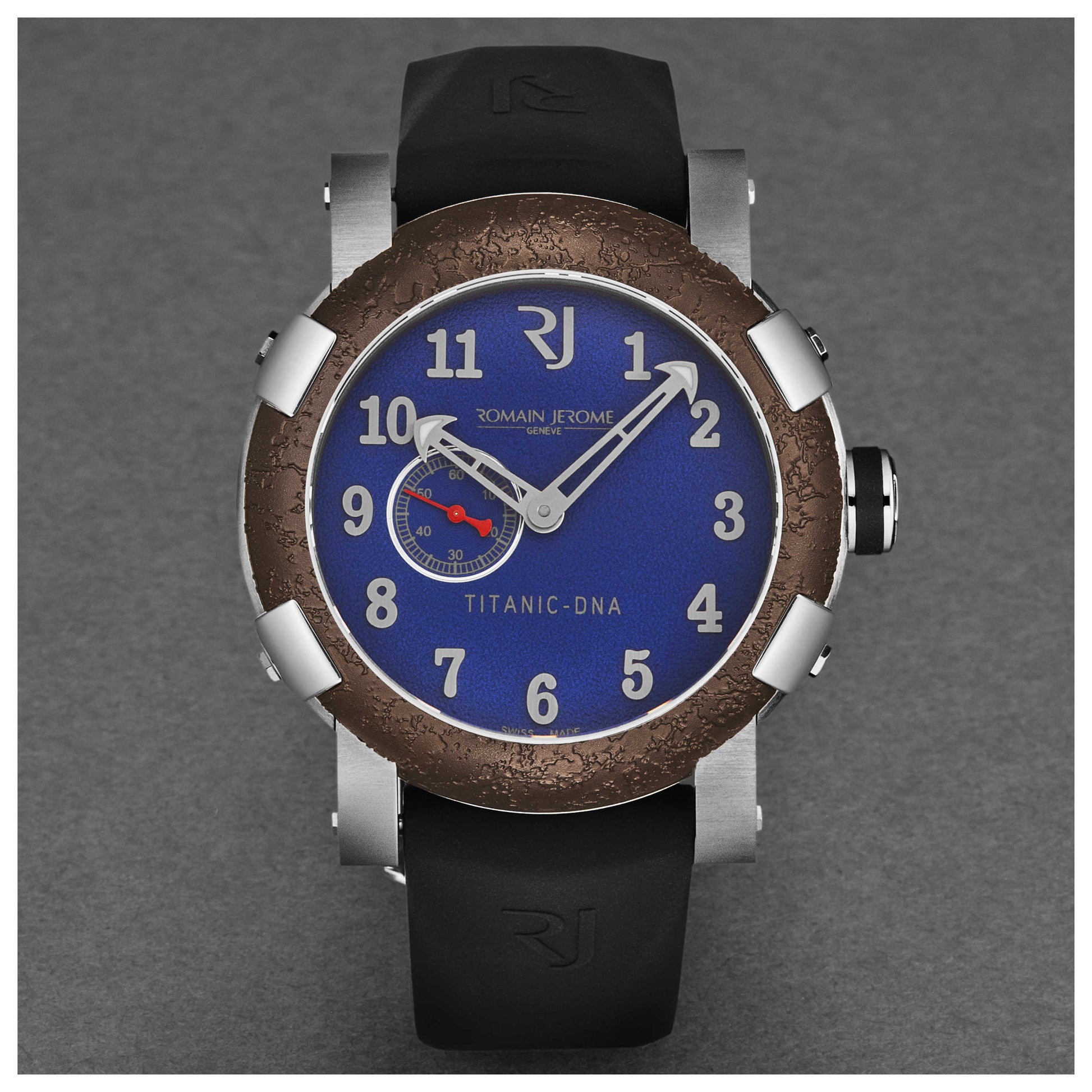 Showcase your style with the Romain Jerome Titanic watch, an excellent timepiece for the contemporary man. Swiss-made, this automatic men's watch boasts a 46mm stainless steel round case, offering durability with its scratch-resistant sapphire crystal and a closed back. The captivating blue dial, coupled with a pull and push crown, enhances the overall aesthetic while providing optimal functionality. Resistant up to 30m of water, this watch is built to endure. Its comfortable black rubber strap, equipped with a deployment clasp, perfectly complements the overall rugged design of this Titanic collection piece. RJTIAU.501.10