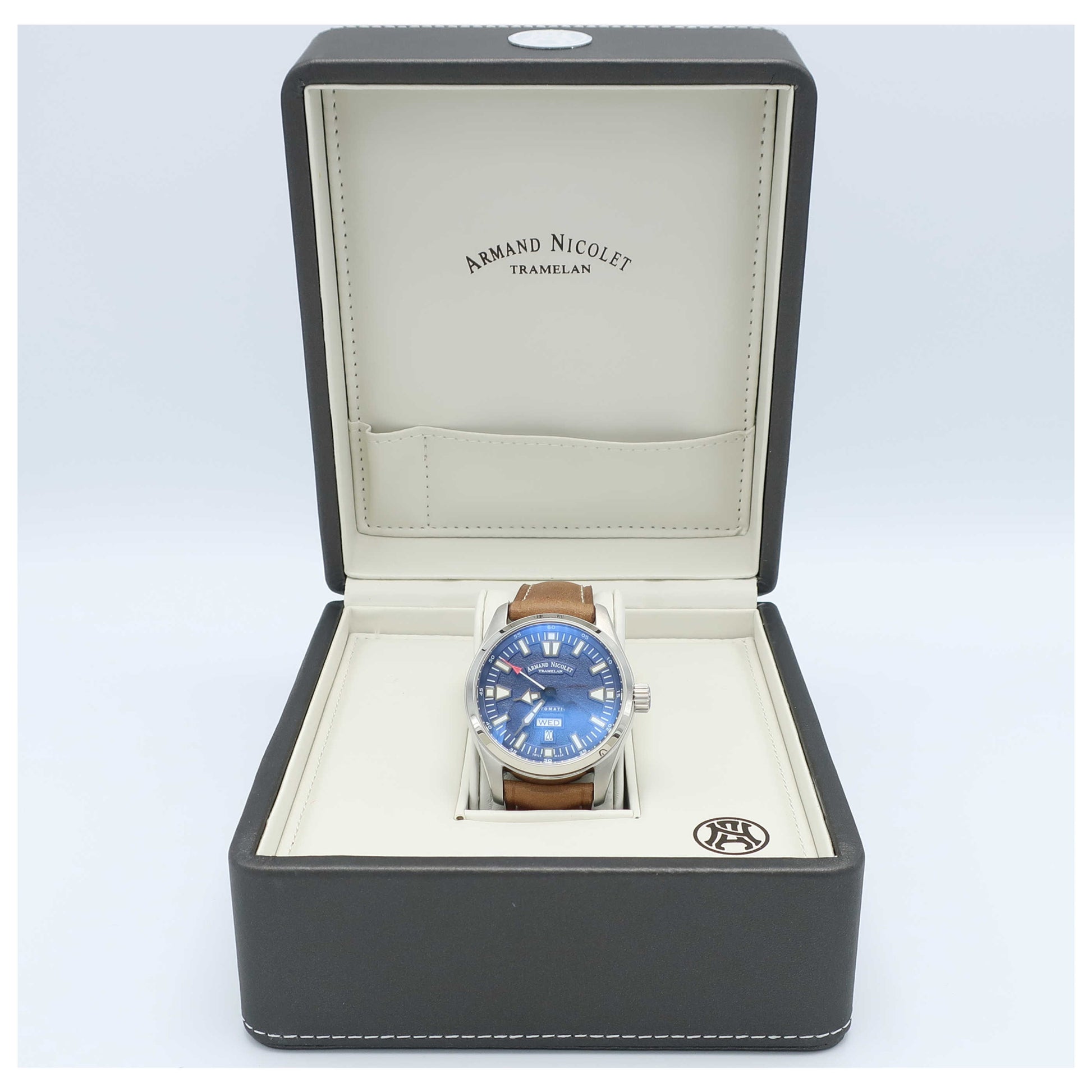 Armand Nicolet, M02, Men's Watch, Stainless Steel Case, Leather Strap, Swiss Mechanical Automatic (Self-Winding), 9640M-BU-PK2420MR-SD