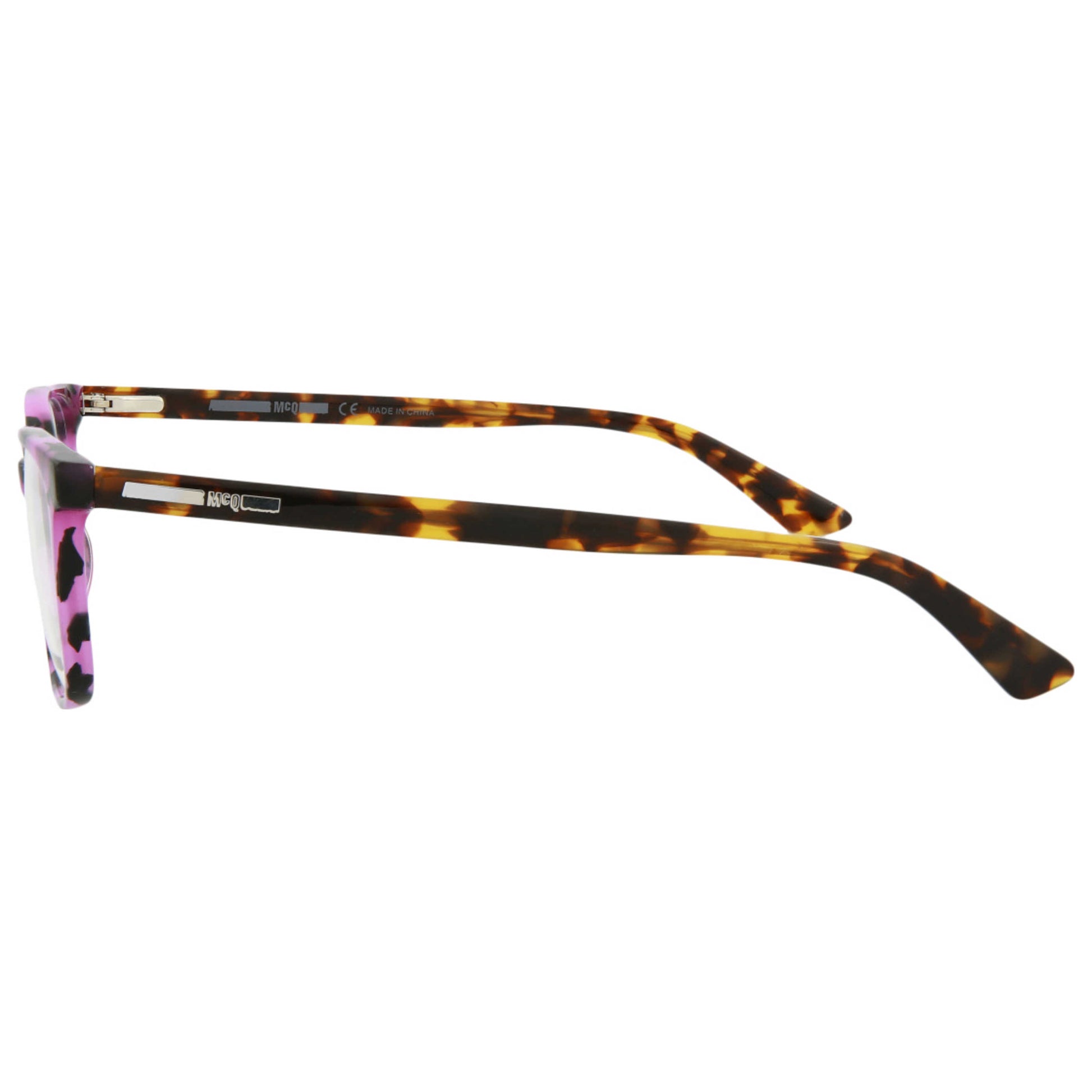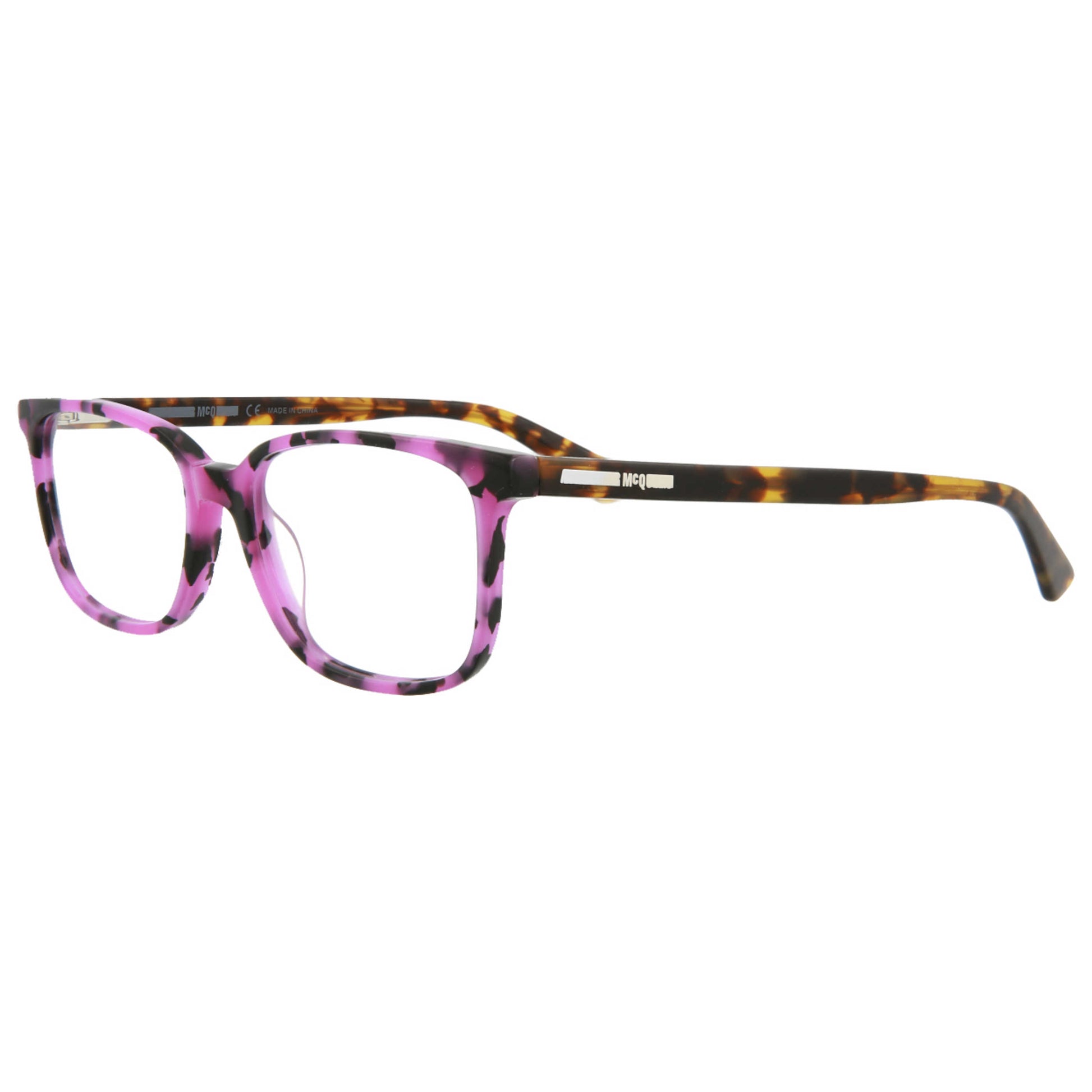 Opt for timeless elegance with Alexander McQueen's McQ optics. Crafted with a brown acetate frame and 52mm lens width, these no-color lens glasses exemplify refined simplicity. MQ0126O-30002784-003