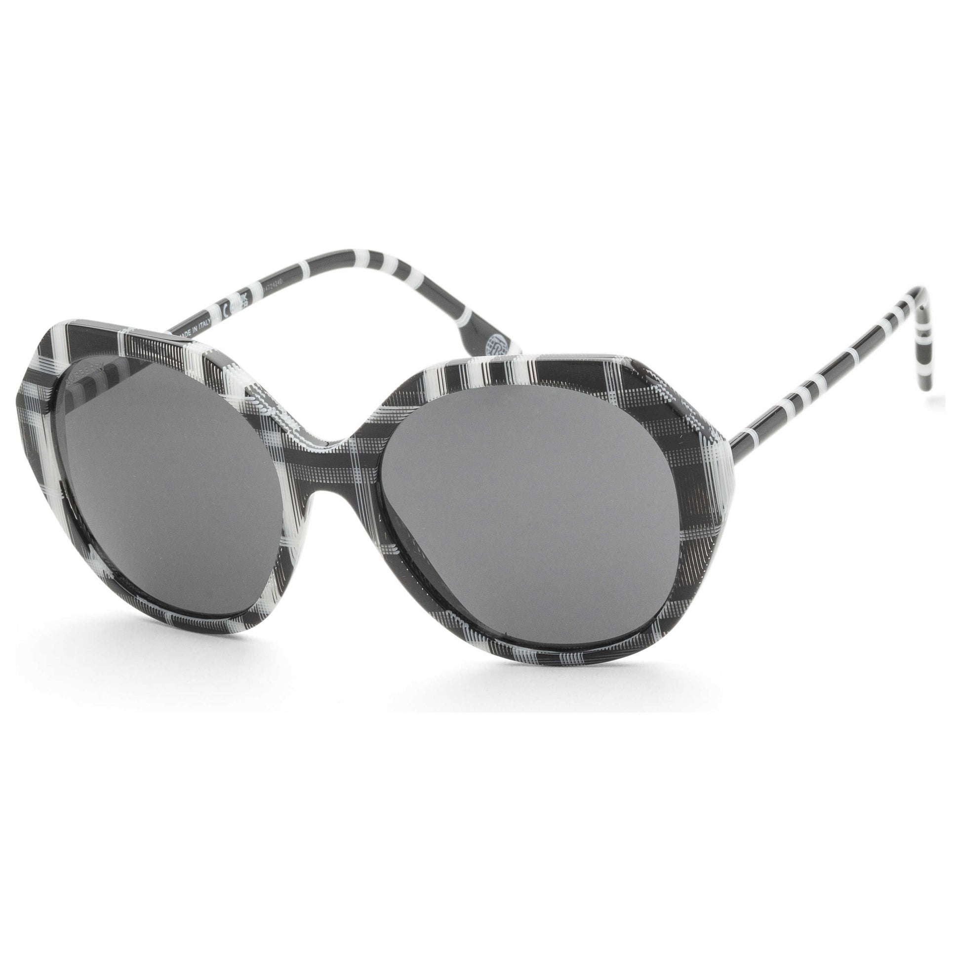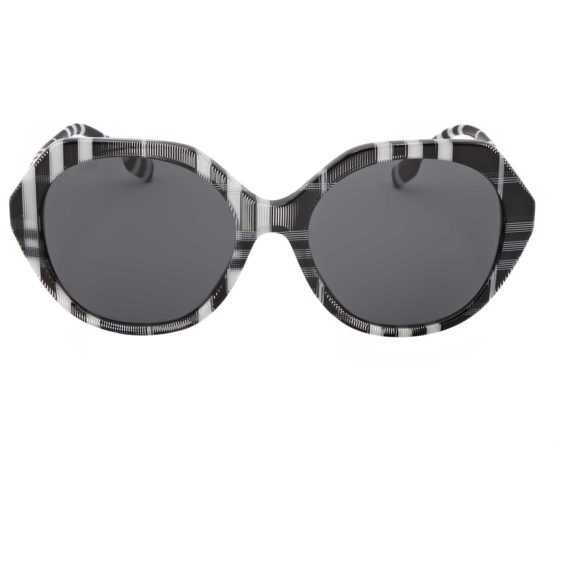 Presenting the Burberry Vanessa sunglasses, a unique choice for the bold women. Crafted with an irregular checker black and white acetate frame and dark grey lenses of 55mm width, these sunglasses provide 100% UV protection. Made in Italy. BE4375-400487