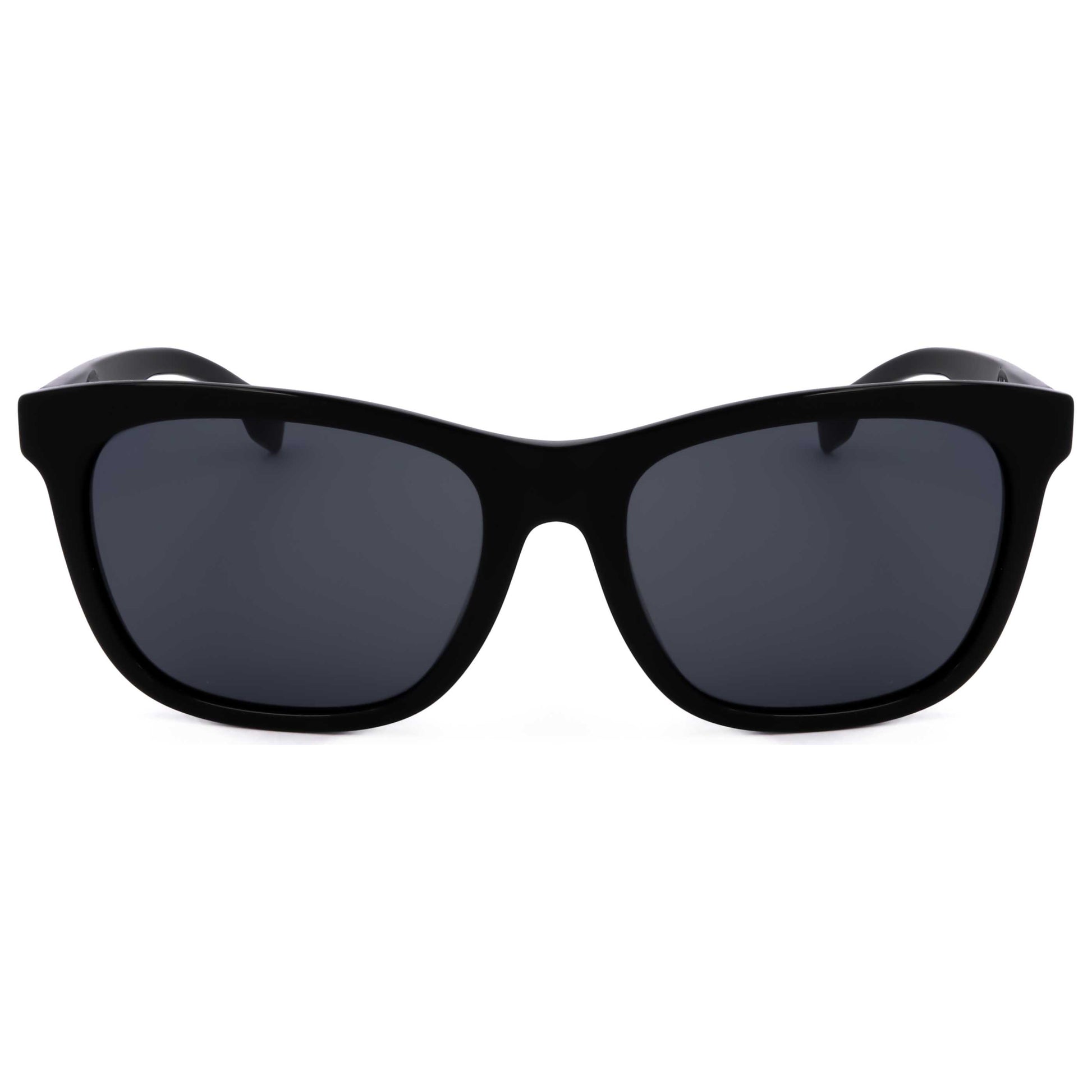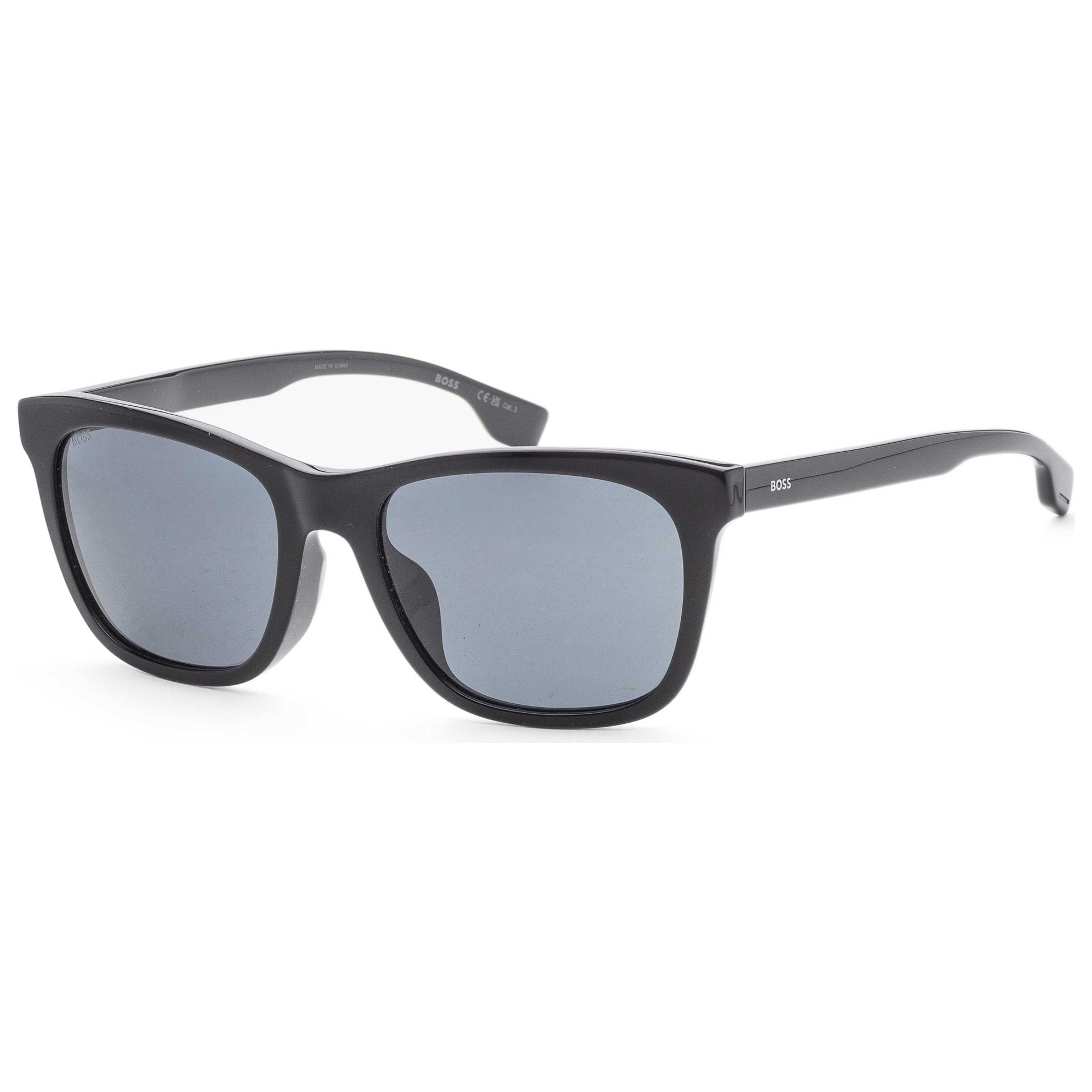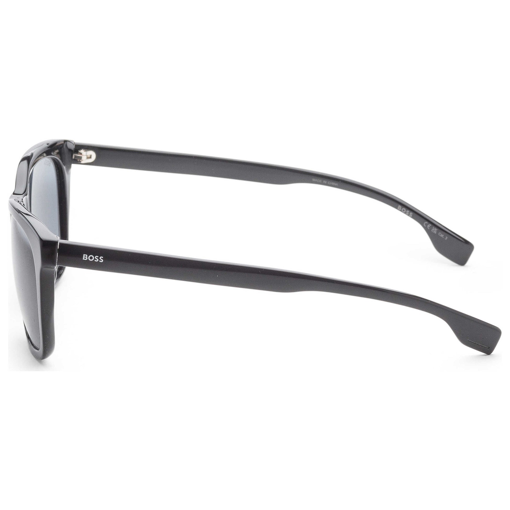 Introducing the Hugo Boss men's sunglasses: a marriage of style and function. Crafted from durable plastic with a classic square frame in sleek black and grey lenses, these sunglasses ensure complete UV protection. Designed for the modern man, they offer a comfortable fit with a 56 mm lens width, 145 mm arm length, and 20 mm bridge width. Ideal for both casual and formal outings. BOSS1555OF-0807-IR