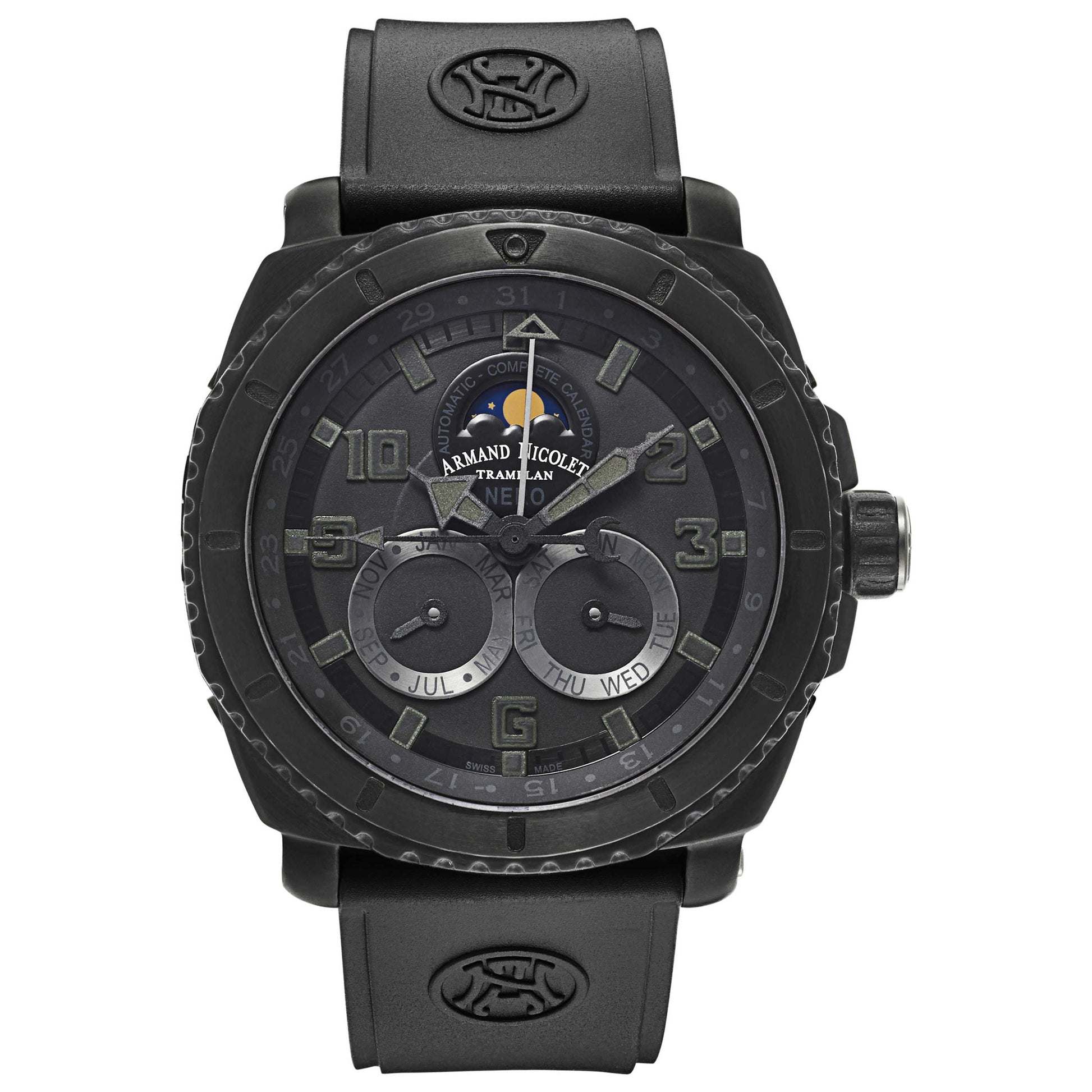 Armand Nicolet, S05 Complete Calendar, Men's Watch, Titanium DLC Coated Case, Rubber Strap, Automatic, T612N-NR-G9610