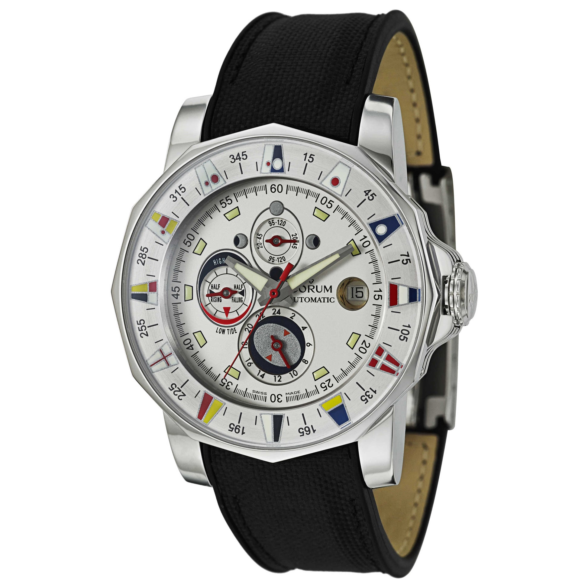Corum, Admiral's Cup Tides, Men's Watch, Stainless Steel Case, Canvas and Leather Strap, Automatic, 977-630-20-F603-AA32