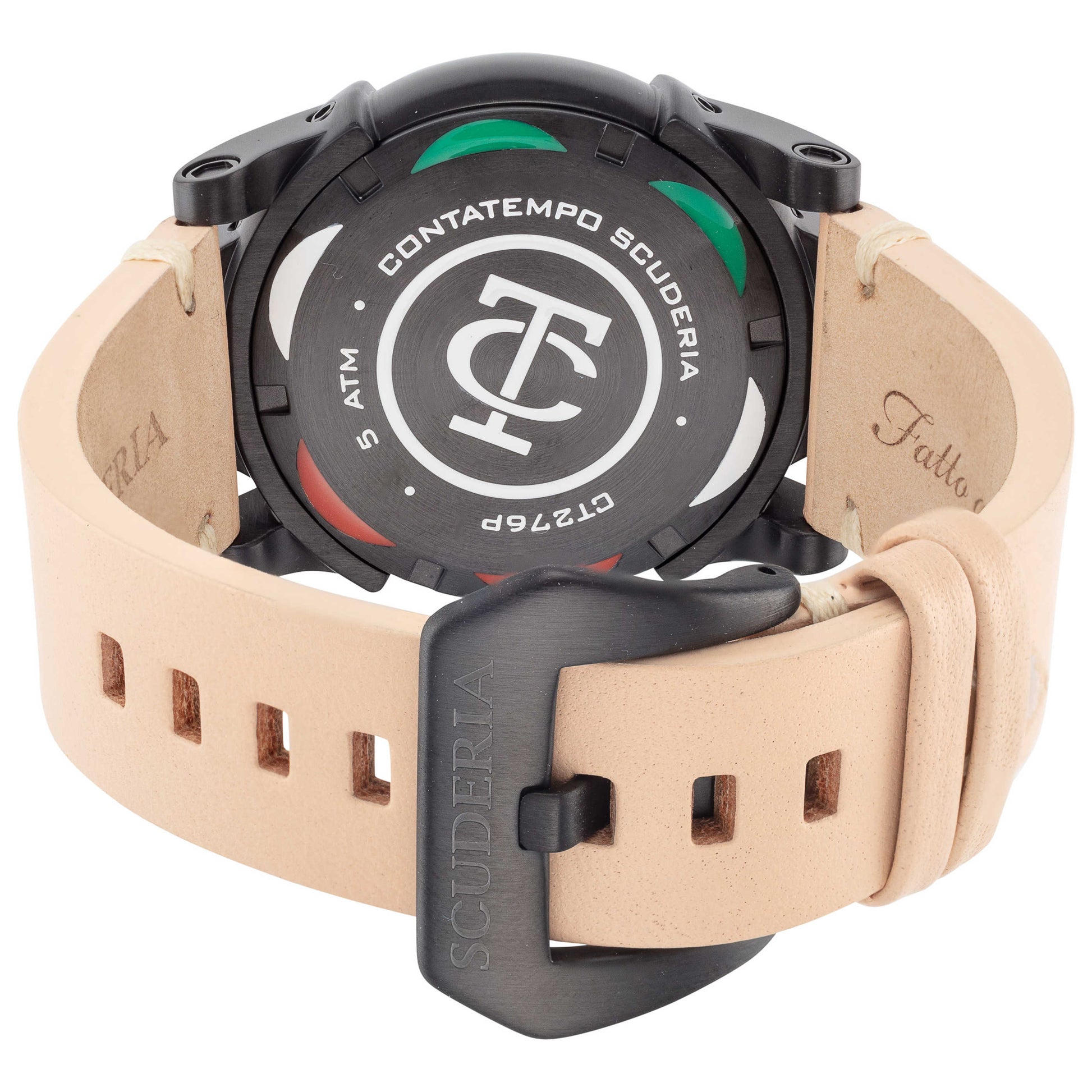 Experience the innovation of the CT Scuderia Due Tempi men's watch, a Japanese-crafted timepiece that signifies precision. Encased in a round 44mm stainless steel body with a closed back, this watch features dual-time Miyota quartz movements - the 1L45 and 2025. The sleek black dial is protected by durable mineral crystal and features a screw-down crown, offering an impressive water resistance of 50m. Fastened by a pin buckle, the brown leather strap perfectly complements the watch, making it an essential accessory for the modern man. CT-276-P