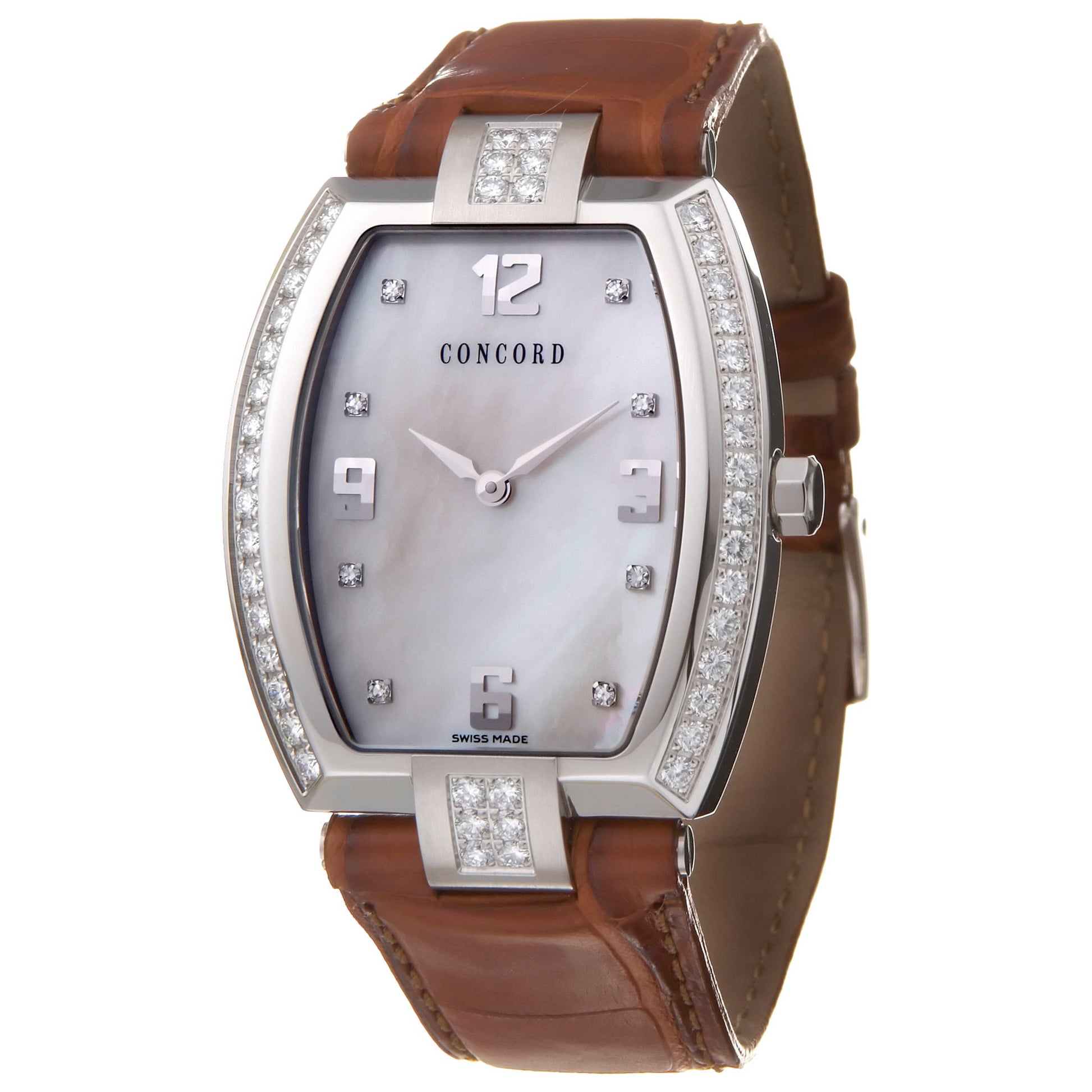 Concord, La Scala Tonneau, Women's Watch, Stainless Steel and Diamonds Case, Leather Alligator Strap, Swiss Quartz (Battery-Powered), 0310786