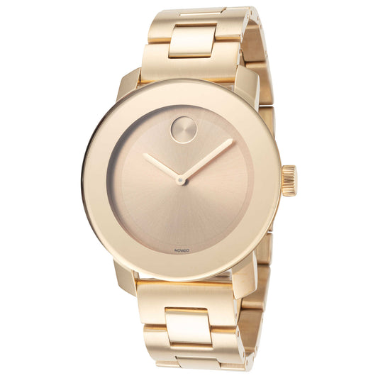 Swiss made Movado Bold is a timeless piece that features the iconic Museum gold dot and dial.