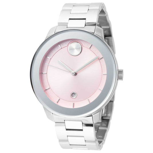 Movado women’s Ultra Slim features an eye-catching slim round bezel in rose gold or silver with a leather band. Sleek and modern, a classy aura will follow you wherever you shall go.