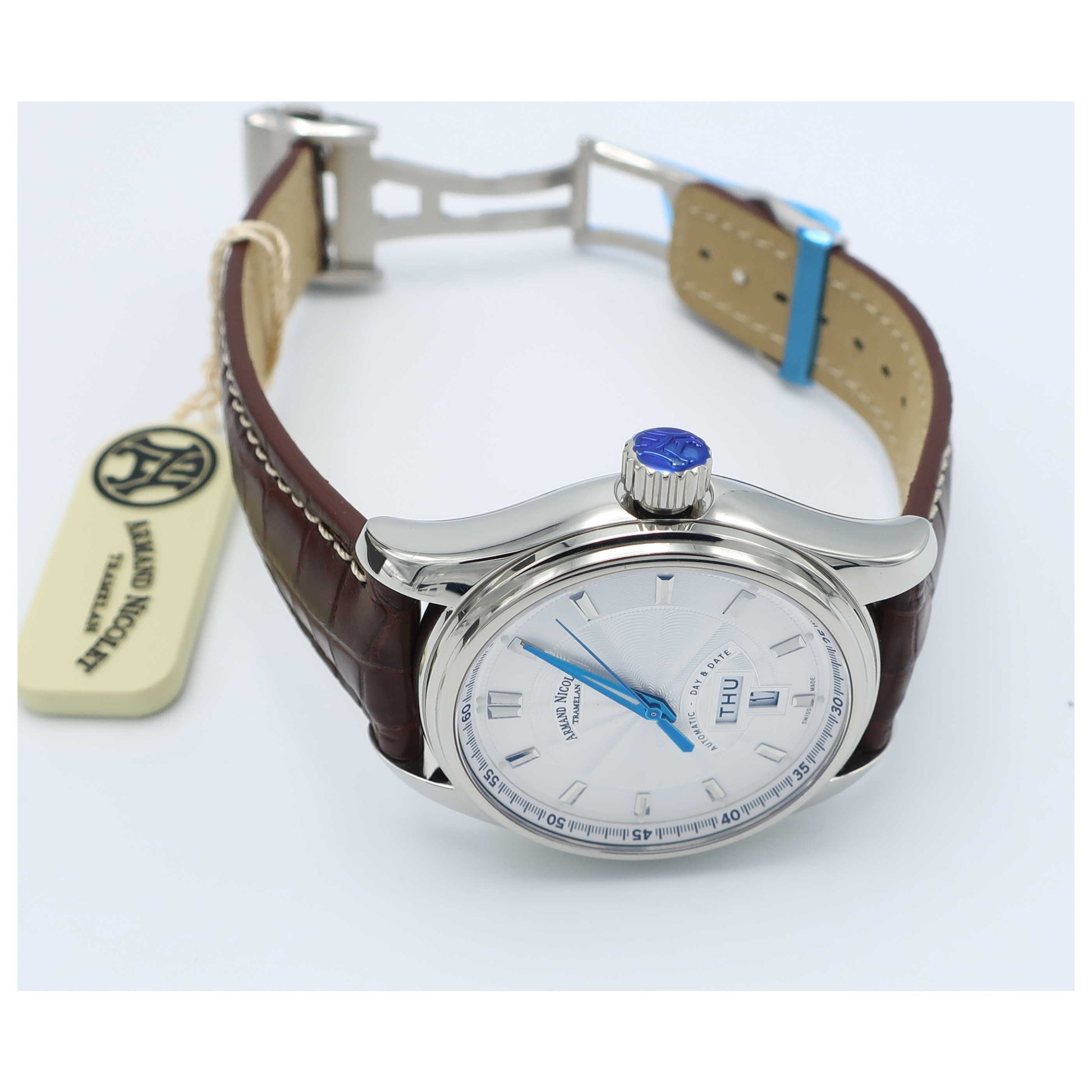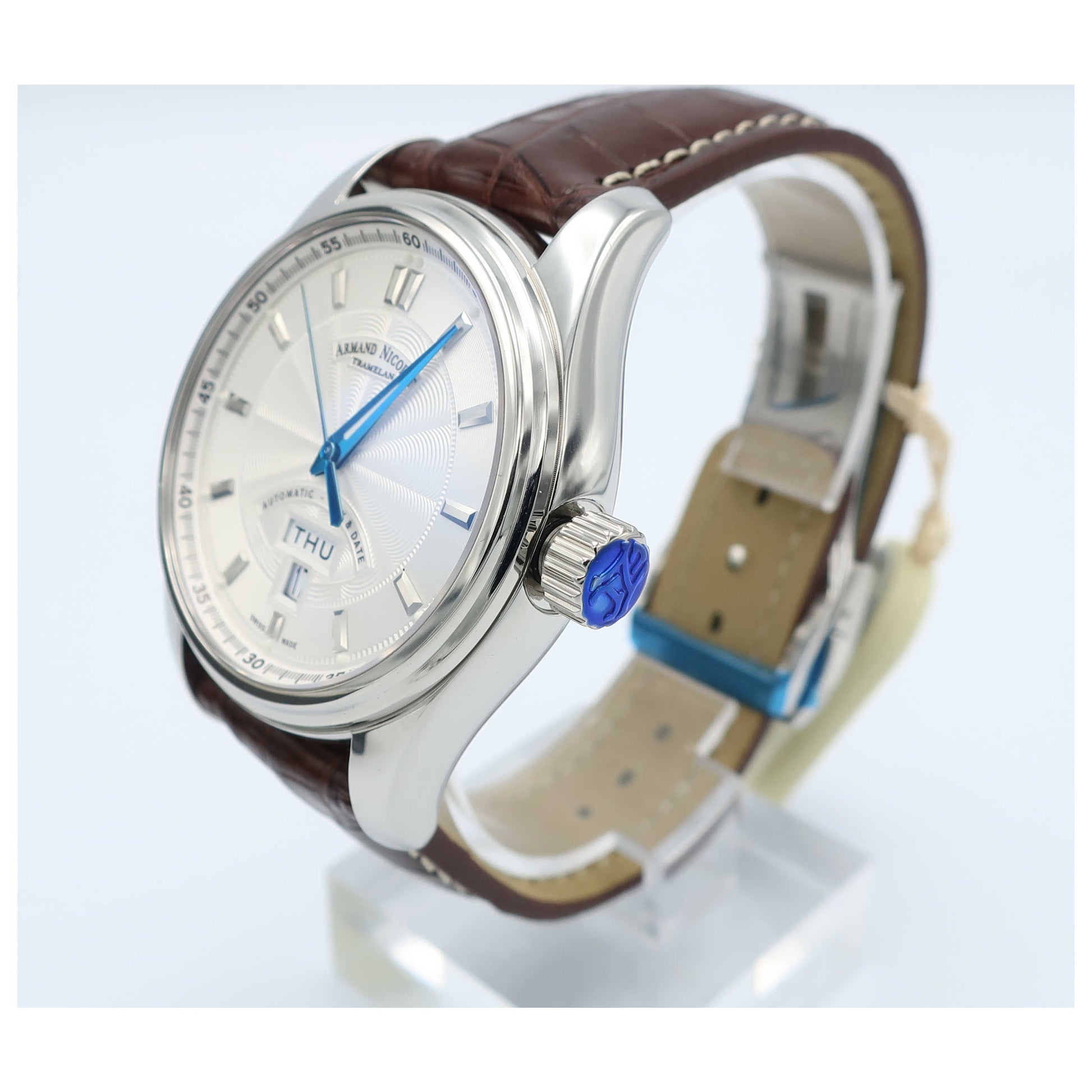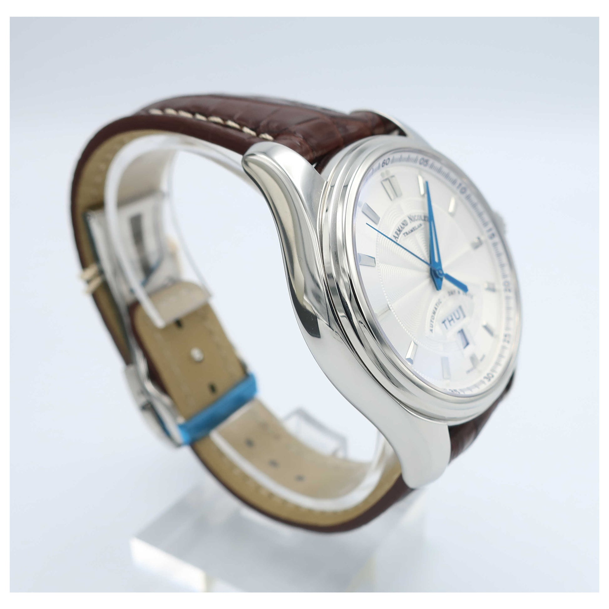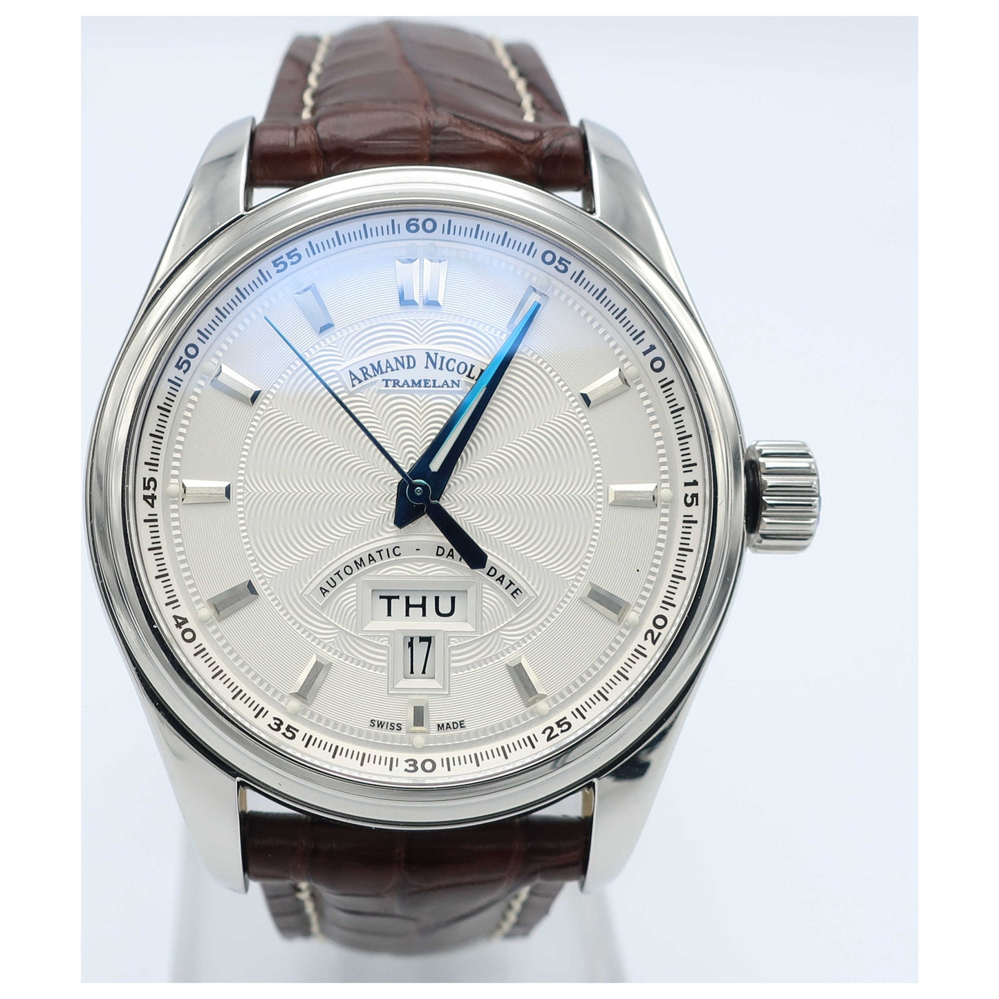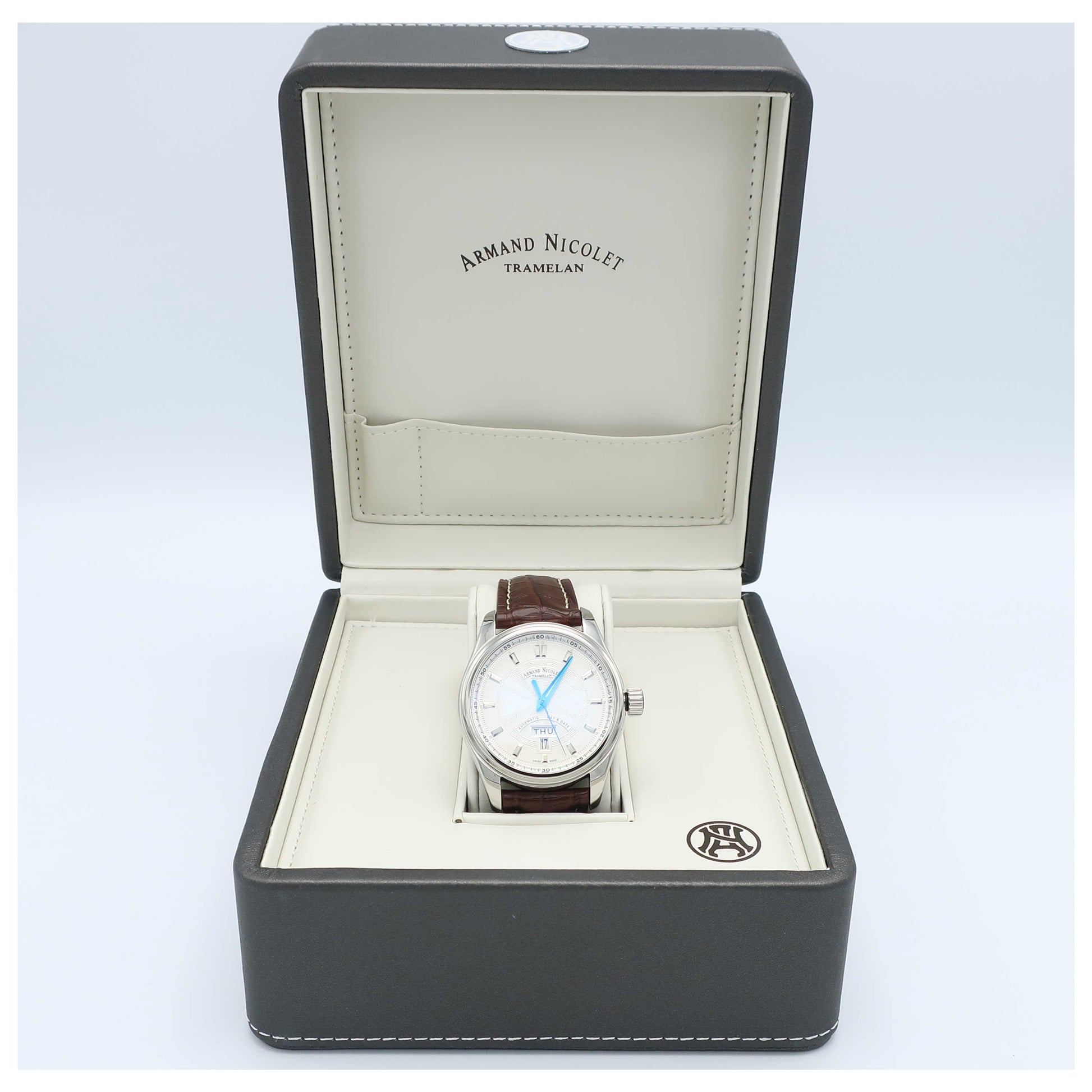 Armand Nicolet, M02, Men's Watch, Stainless Steel Case, Leather Alligator Strap, Swiss Mechanical Automatic (Self-Winding), 9640A-AG-P974MR2-SD