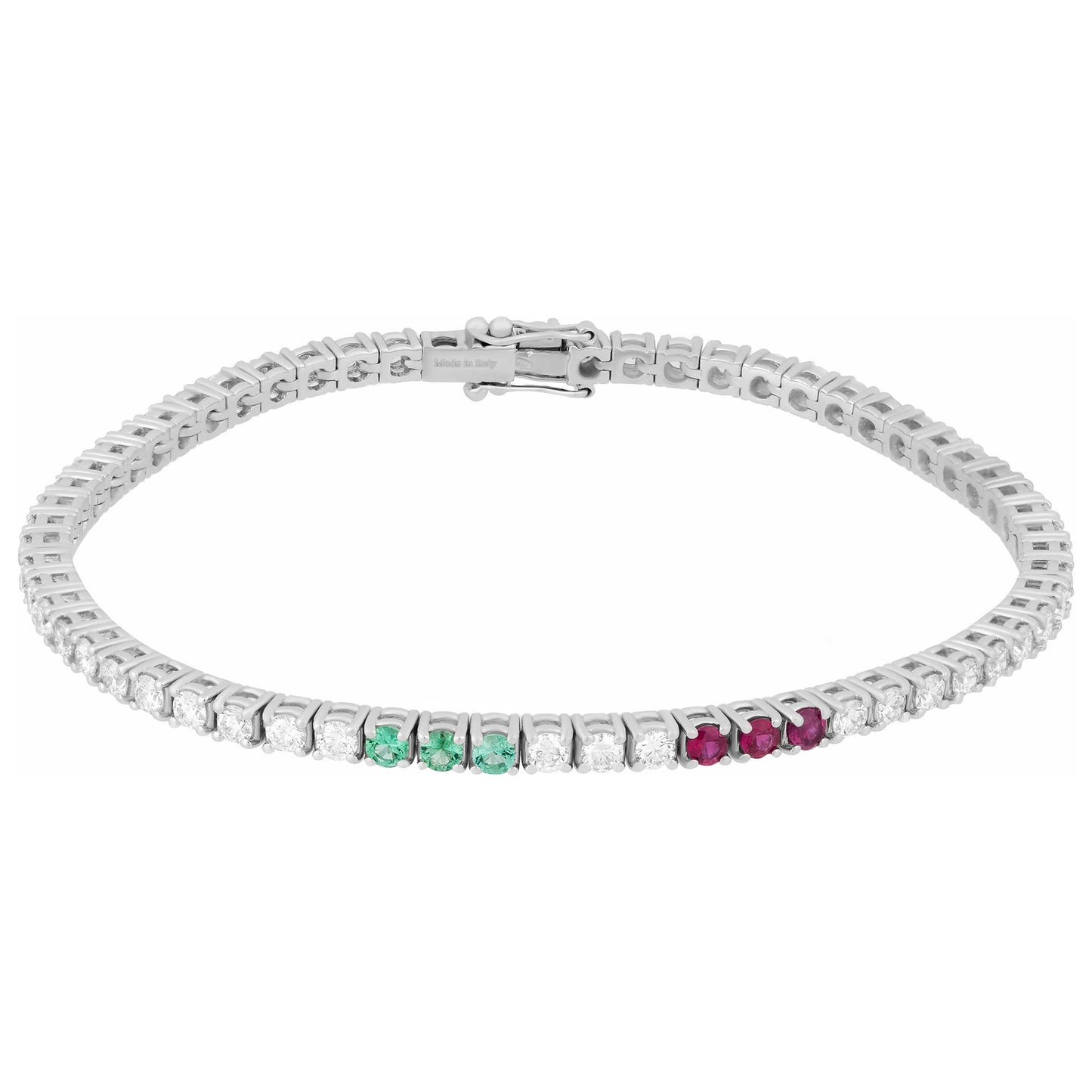 Damiani, 18K White Gold Women's Tennis Bracelet, 2.7 ctw. White Diamonds., 0.36 ctw. Emeralds and Rubies