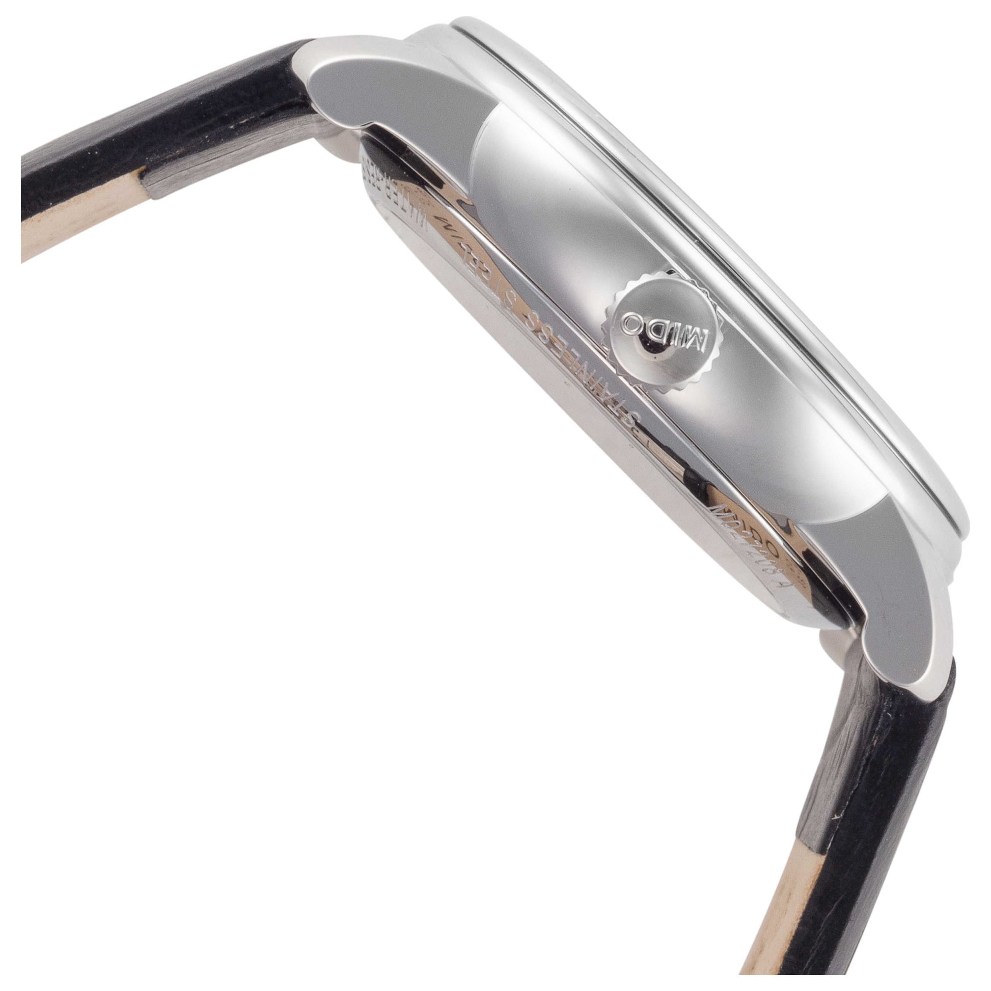 Experience the exquisite elegance of the Mido Baroncelli III women's watch, straight from Switzerland. Powered by a Powermatic 80 automatic movement, this Swiss-made timepiece guarantees a power reserve of 80 hours. Encased in a 34mm stainless steel round frame, the mother-of-pearl dial displays the date at 3 o'clock, beautifully protected under a scratch-resistant sapphire crystal. The exhibition case back offers a peek into the intricate workings. The black leather strap seamlessly fastens with a deployment clasp, providing a sophisticated contrast. With its pull and push crown and 30m water resistance, it's not just stunning—it's durable too. M0272081610600