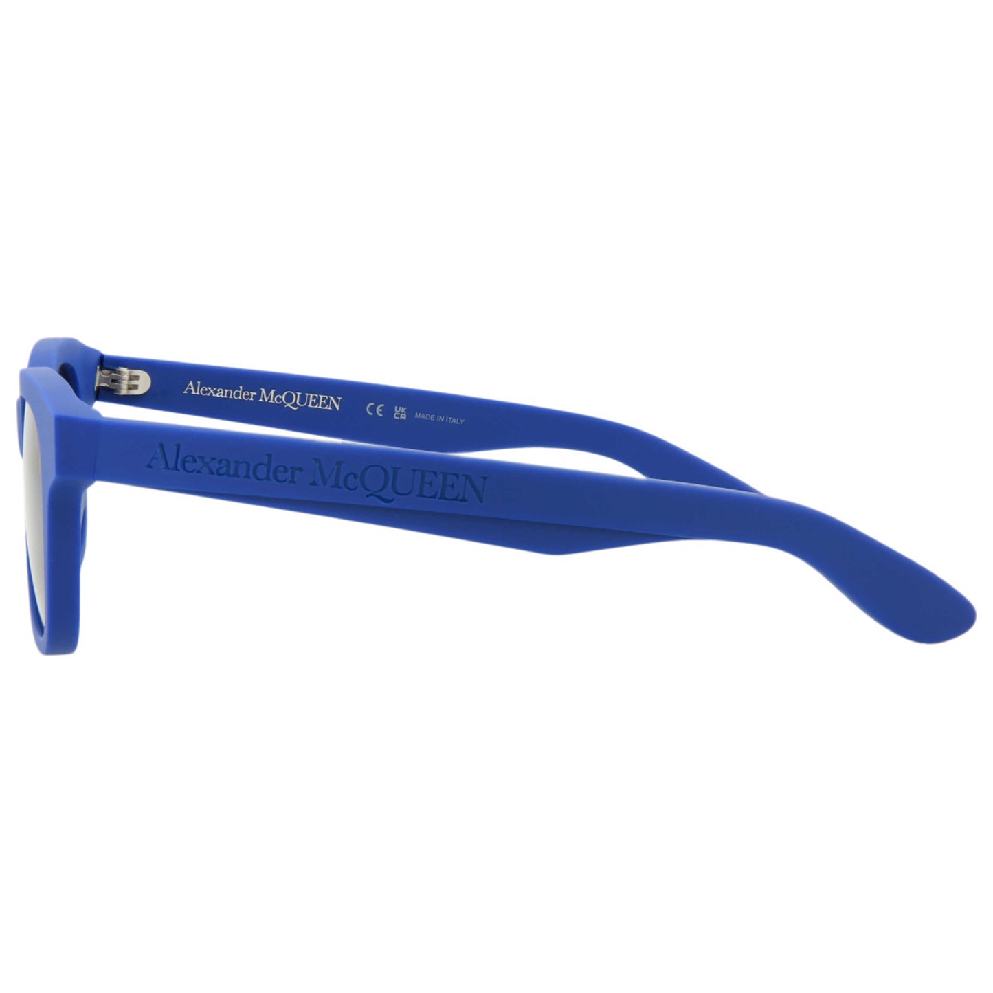 Crafted for the modern man, these Alexander McQueen sunglasses combine style and sophistication. Featuring a blue acetate frame with a lens width of 48 mm, and arms measuring 145 mm, these pieces promise durability and a perfect fit. Finished in Italy, the blue lenses ensure a seamless blend of fashion and function. AM0382S-30013620-004