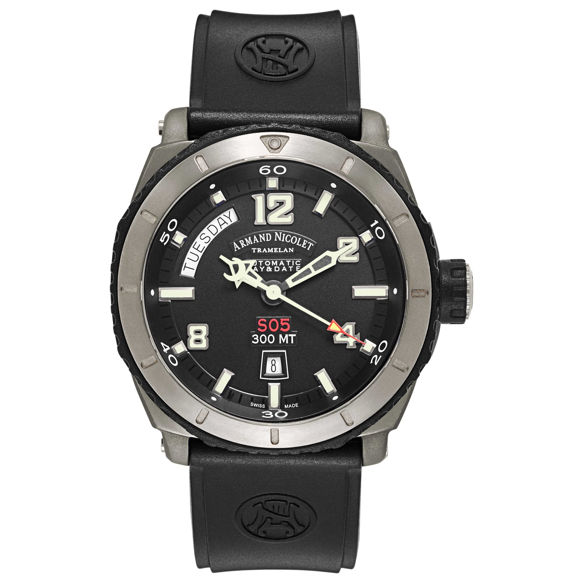 Armand Nicolet, S05, Men's Watch, Titanium Case, Rubber Strap, Swiss Mechanical Automatic (Self-Winding), T610A-1-GR-G9610