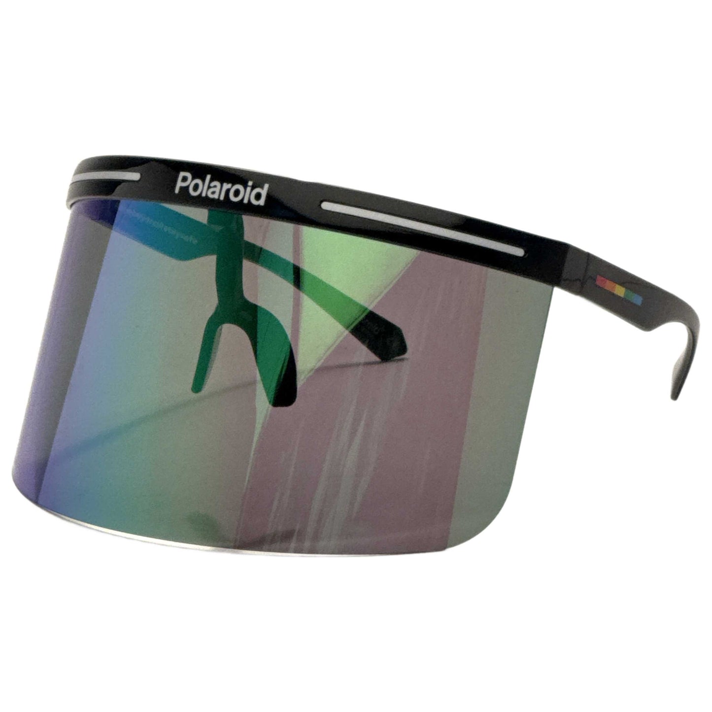 Elevate your outdoor style with these Polaroid sunglasses featuring a black green plastic shield frame and green lenses. With a lens width of 99 mm, arm length of 130 mm, and bridge width of 1 mm, they offer complete UV protection. Perfect for adding a splash of style while safeguarding your eyes. PLD7038S-07ZJ-MT