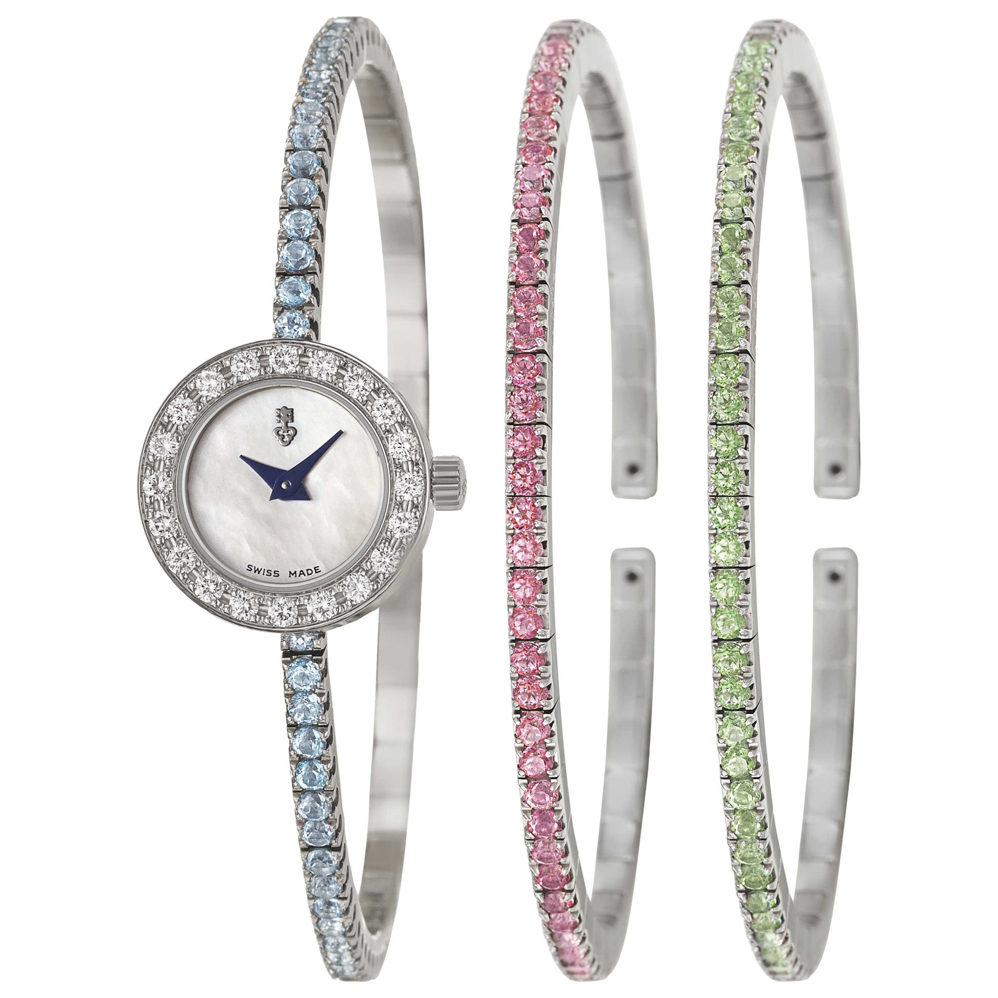 Corum, Romantic Debutante, Women's Watch, Stainless Steel Case, Stainless Steel and Gemstones Bracelet Interchangeable, Swiss Quartz (Battery-Powered), 137-501-47-SETB-PN34