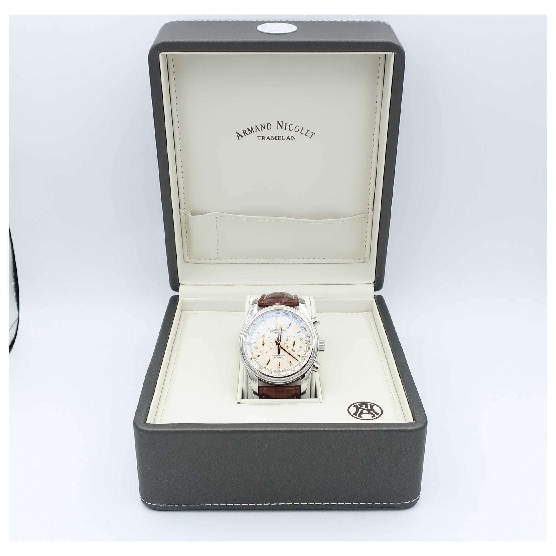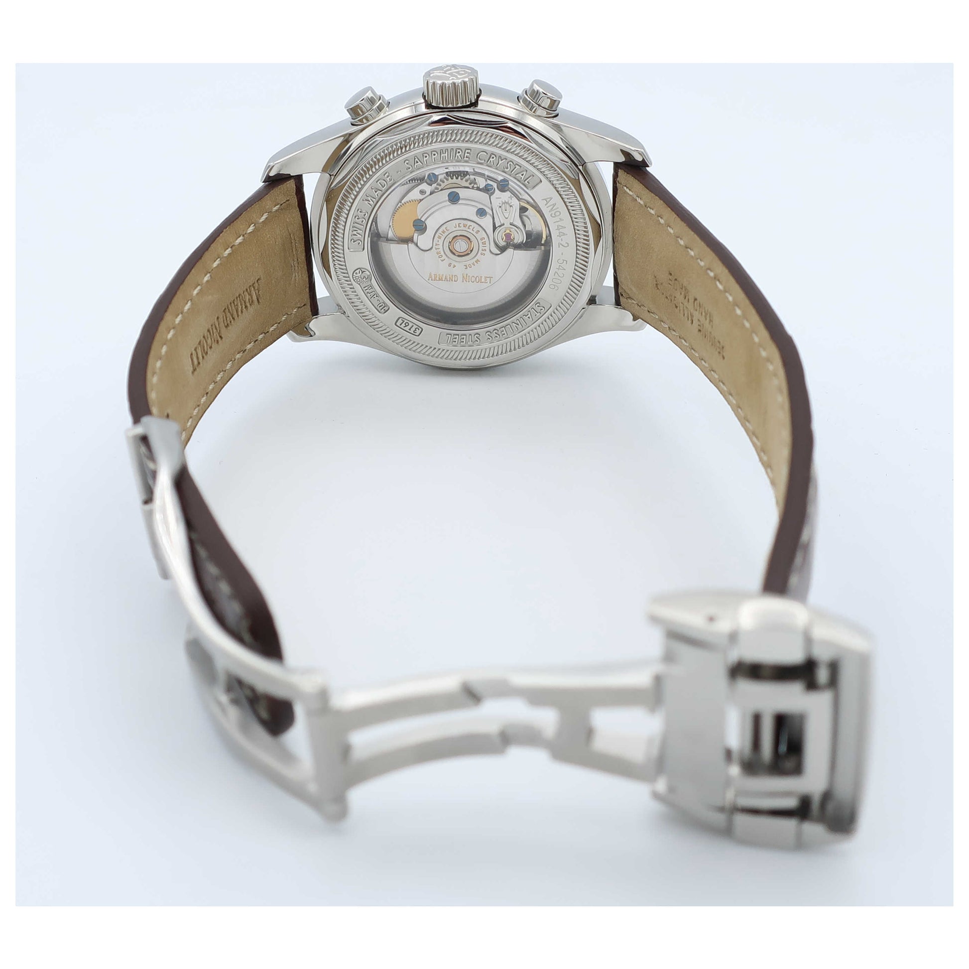 Armand Nicolet, M02, Men's Watch, Stainless Steel Case, Leather Alligator Strap, Swiss Mechanical Automatic (Self-Winding), 9144A-AS-P974MR2-PO