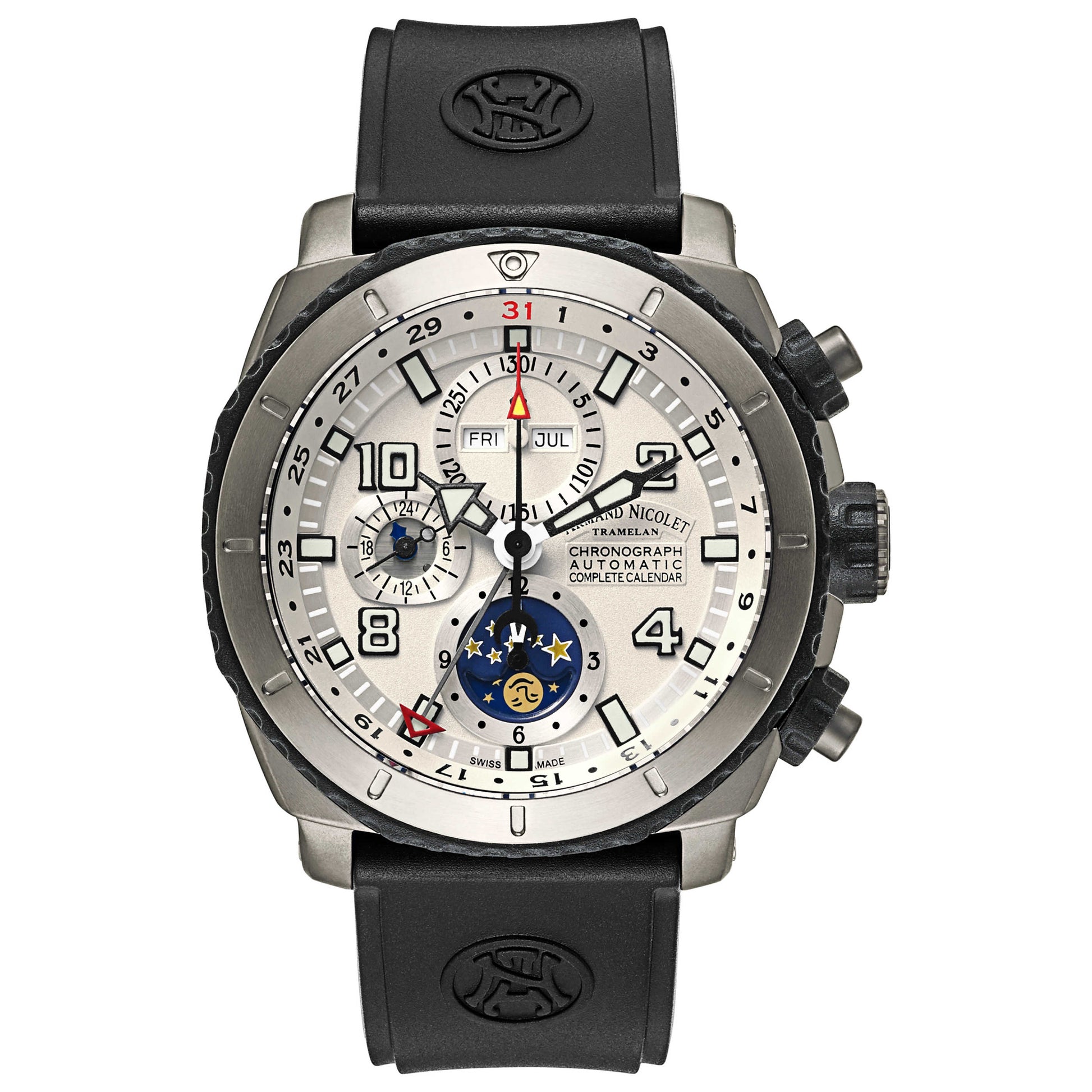 Armand Nicolet, S05 Chronograph & Complete Calendar, Men's Watch, Titanium Case, Rubber Strap, Automatic, T614A-AG-G9610