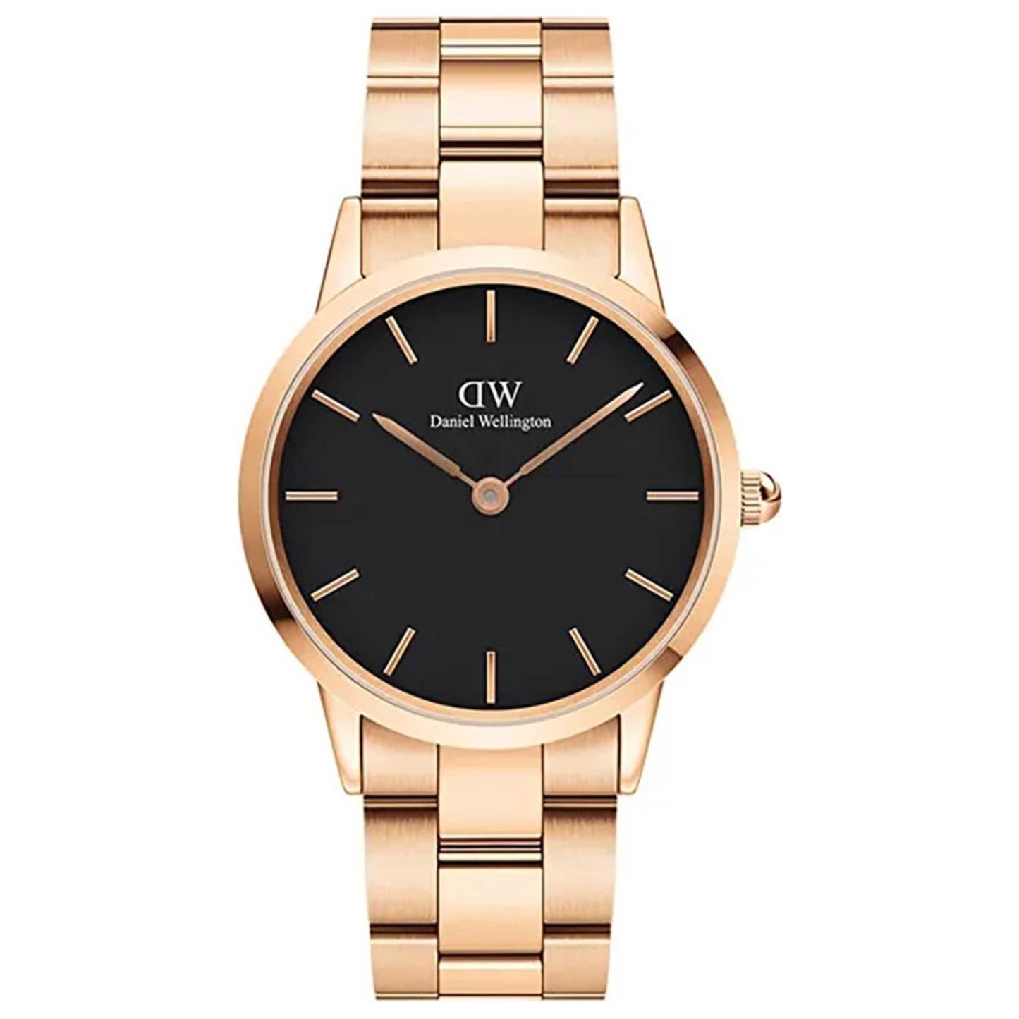 Discover the Daniel Wellington Iconic Link, a unisex timepiece that blends functionality with style. Made with a quartz movement crafted in Japan, this watch features a round stainless steel case with a mineral crystal, measuring 36mm in diameter. It boasts a black dial paired with a rose gold stainless steel bracelet secured by a deployment clasp, offering water resistance up to 30m (100 feet). A timeless accessory that suits every occasion. DW00600210