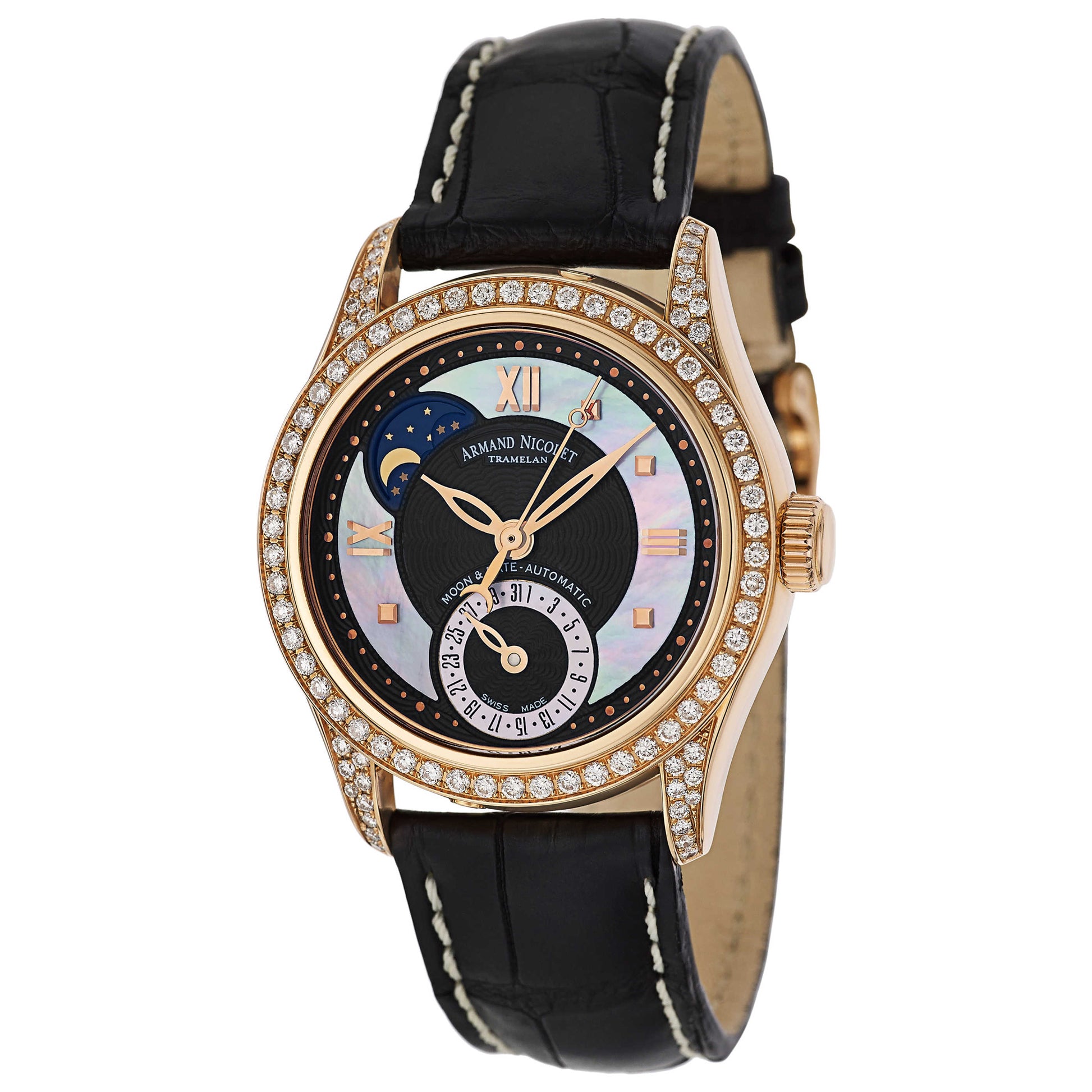 Armand Nicolet, M03, Women's Watch, 18K Rose Gold and Diamonds Case, Leather Alligator Strap, Automatic, 7151L-NN-P915NR8