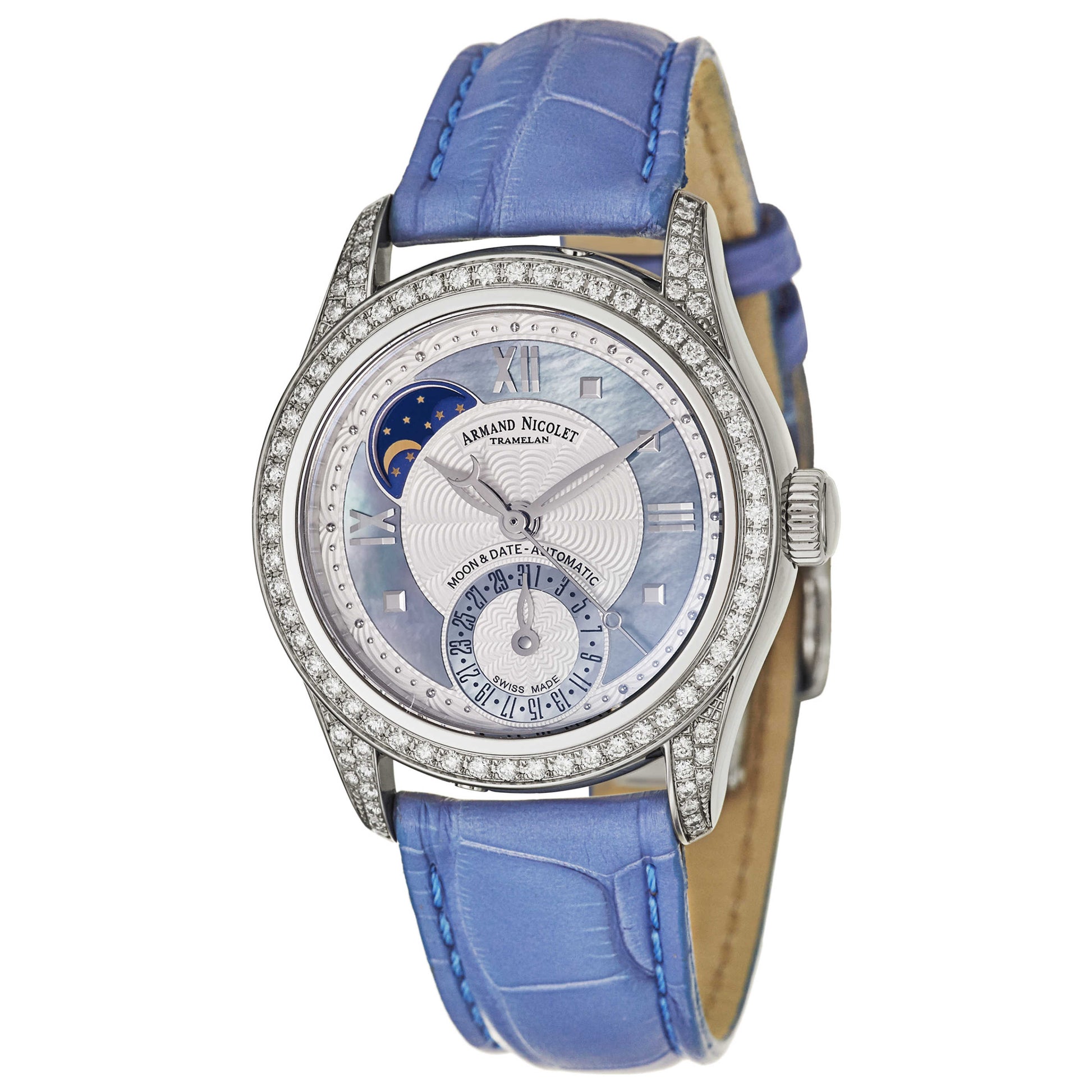 Armand Nicolet, M03, Women's Watch, Stainless Steel and Diamonds Case, Leather Alligator Strap, Automatic, 9151L-AK-P915VL8