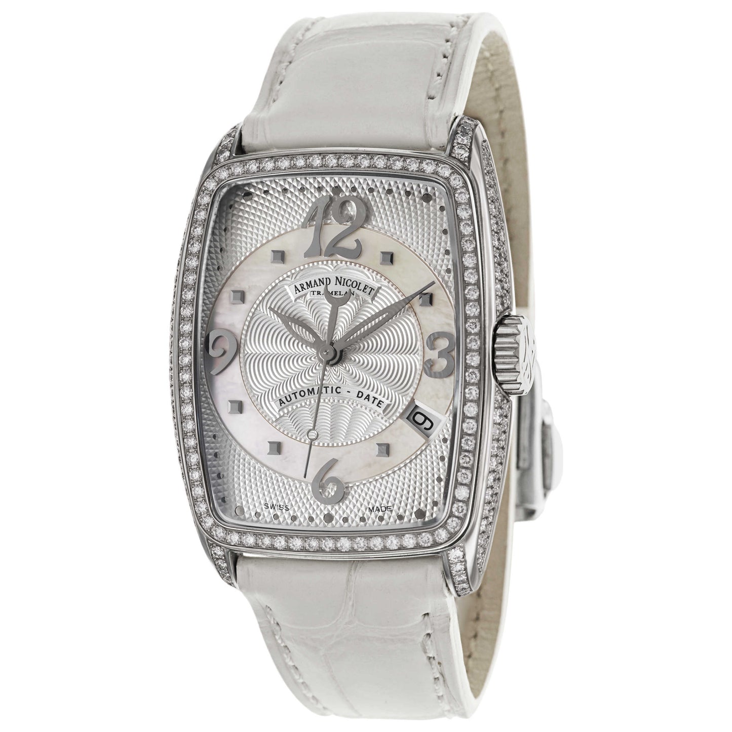 Armand Nicolet, TL7, Women's Watch, Stainless Steel and Diamonds Case, Leather Alligator Strap, Swiss Mechanical Automatic (Self-Winding), 9631V-AN-P968BC0