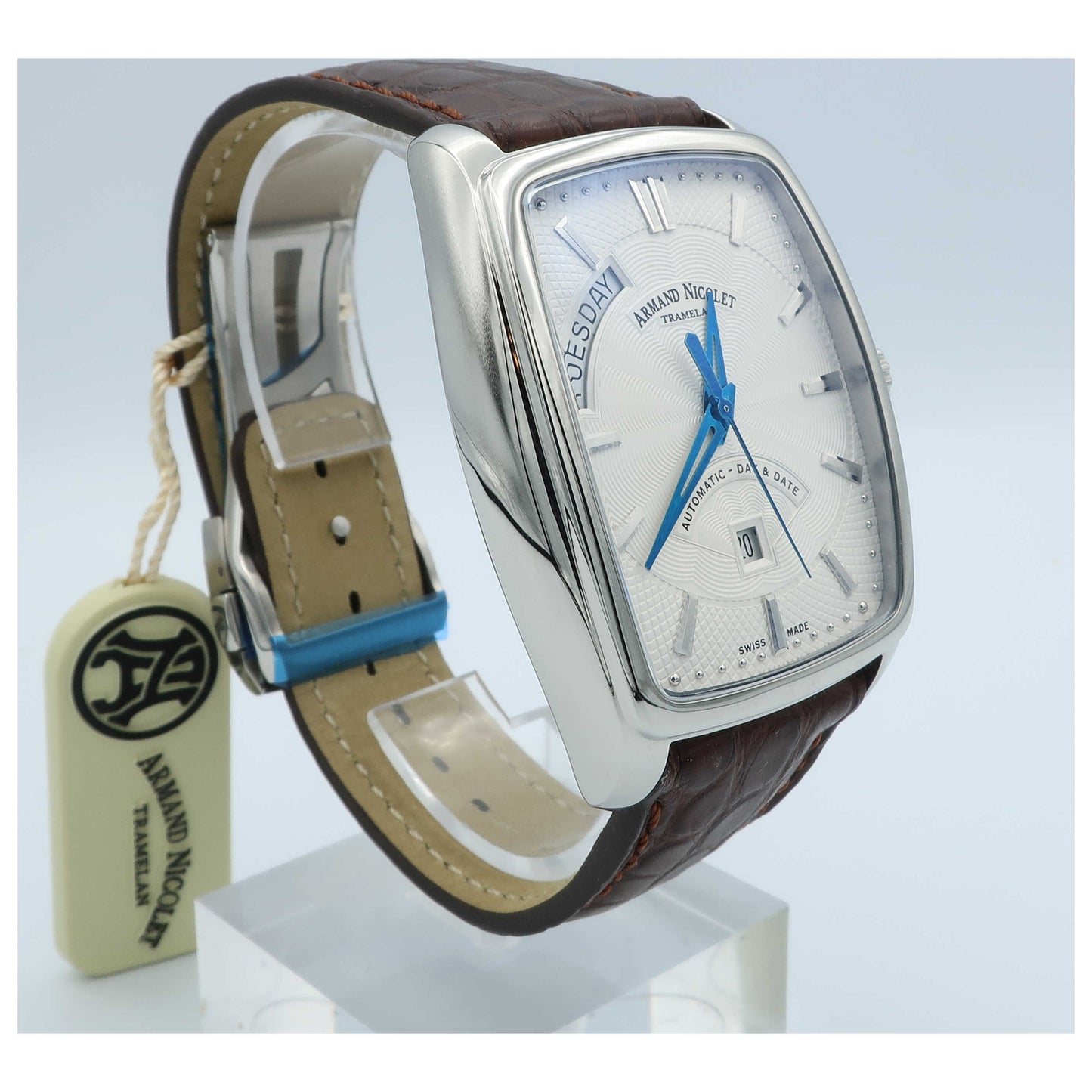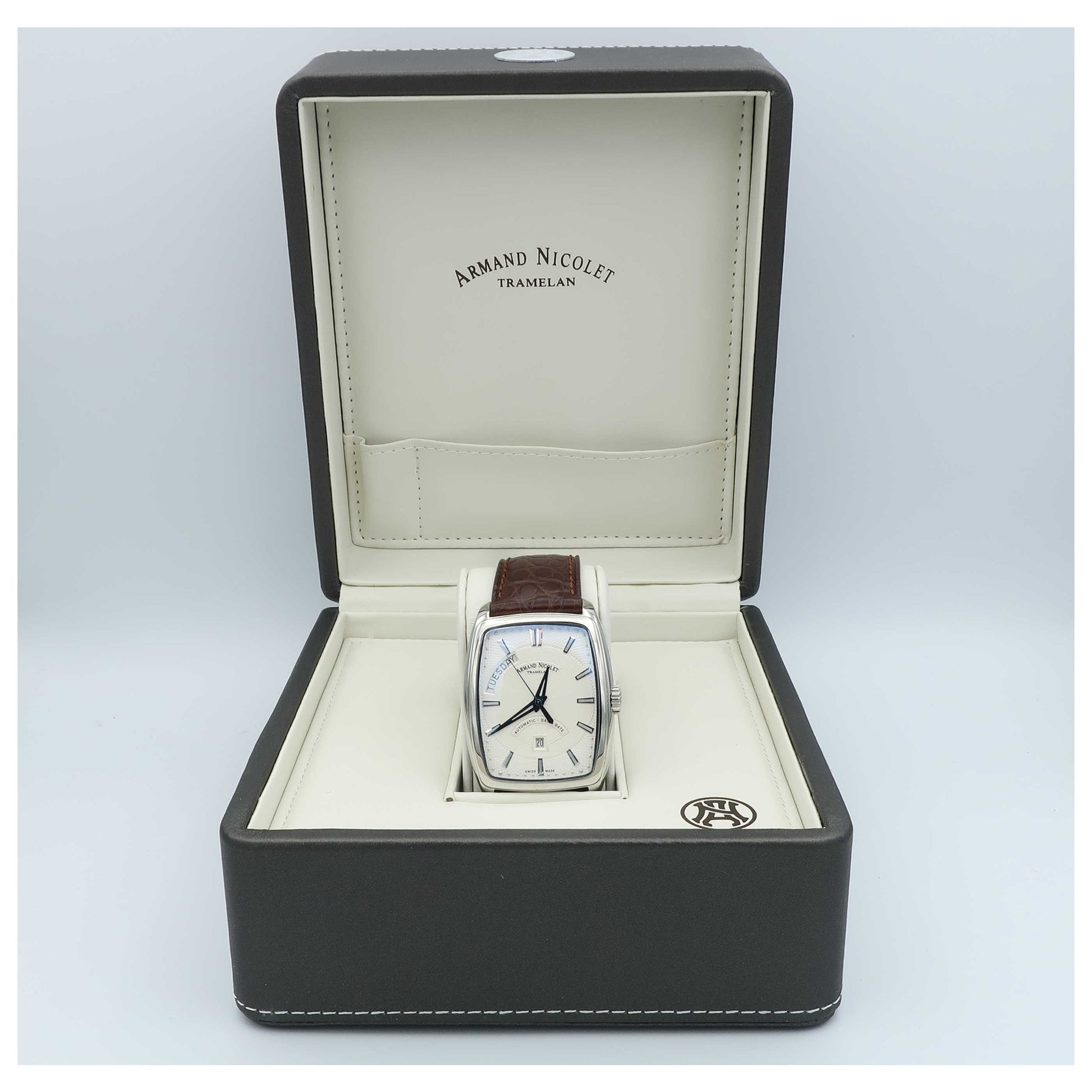 Armand Nicolet, TM7, Men's Watch, Stainless Steel Case, Leather Alligator Strap, Swiss Mechanical Automatic (Self-Winding), 9636A-AG-P968MR3-SDV
