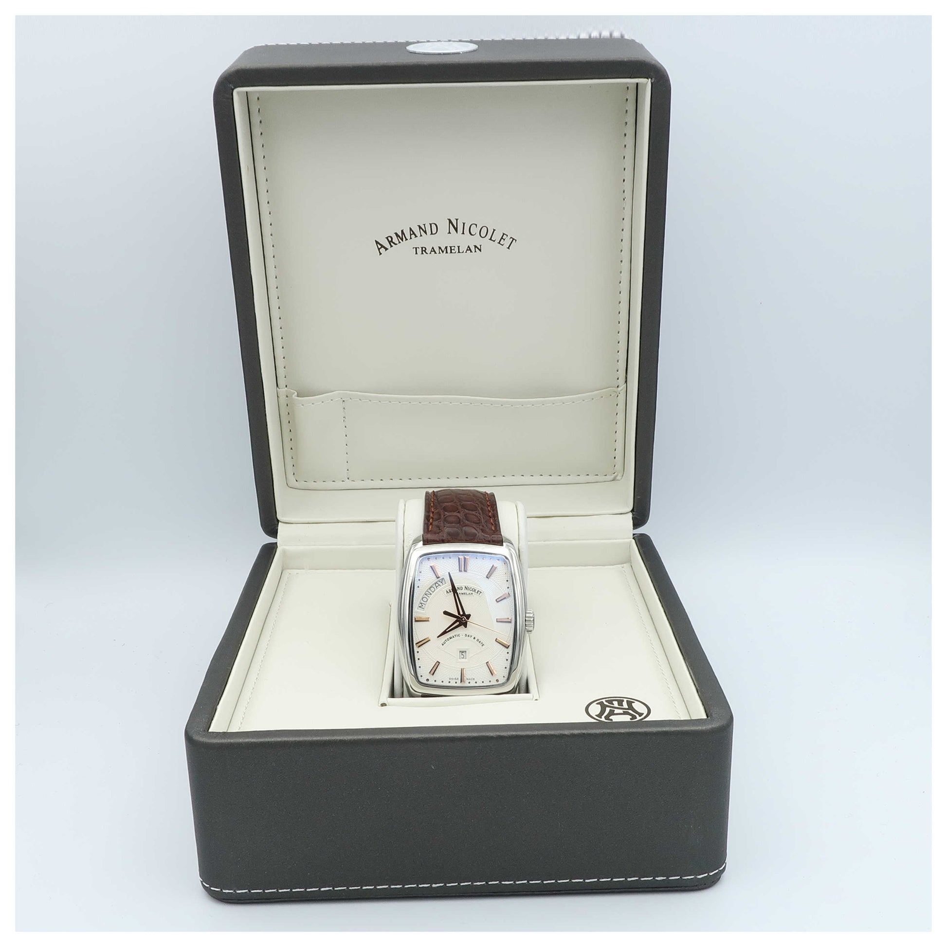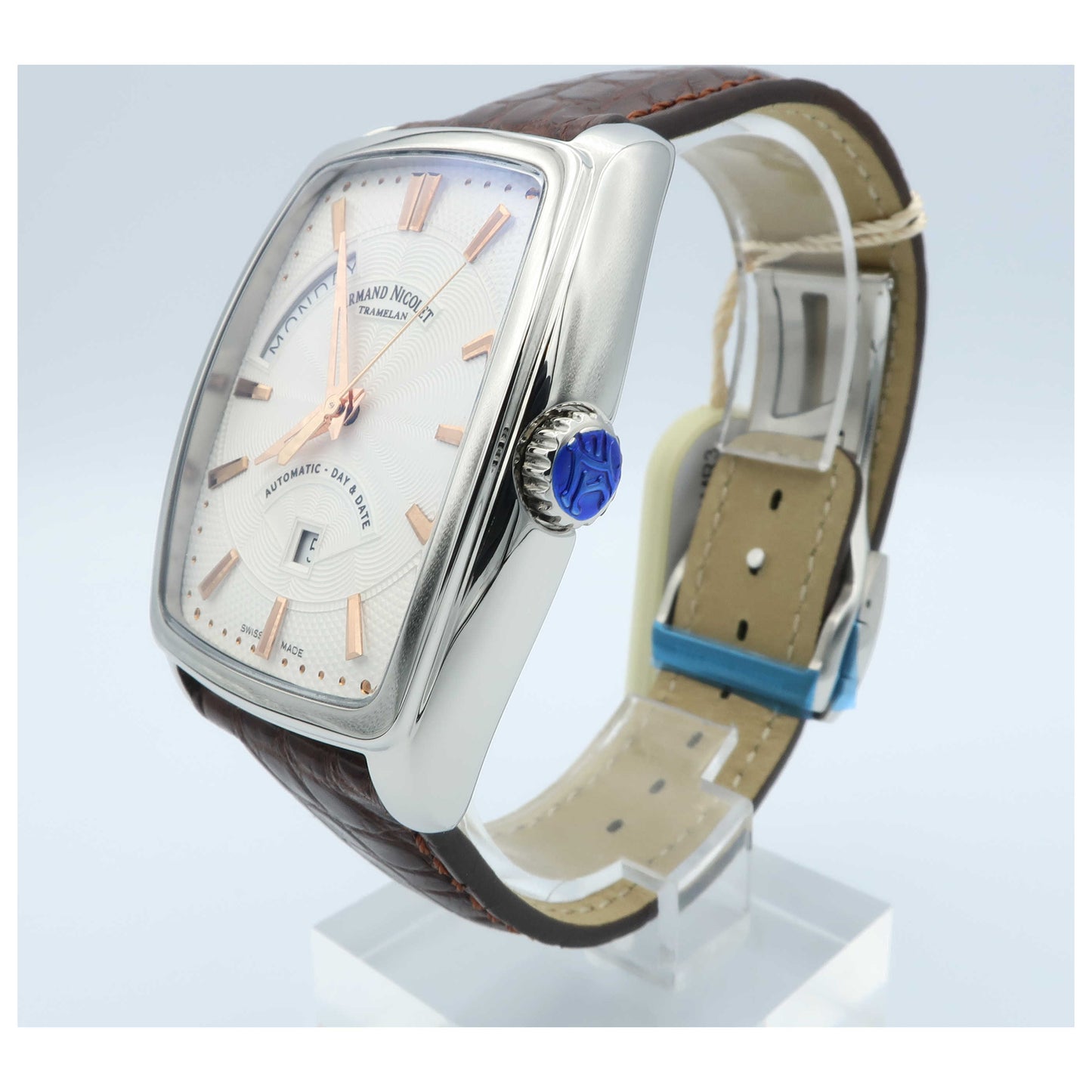Armand Nicolet, TM7, Men's Watch, Stainless Steel Case, Leather Alligator Strap, Swiss Mechanical Automatic (Self-Winding), 9636A-AS-P968MR3-SD