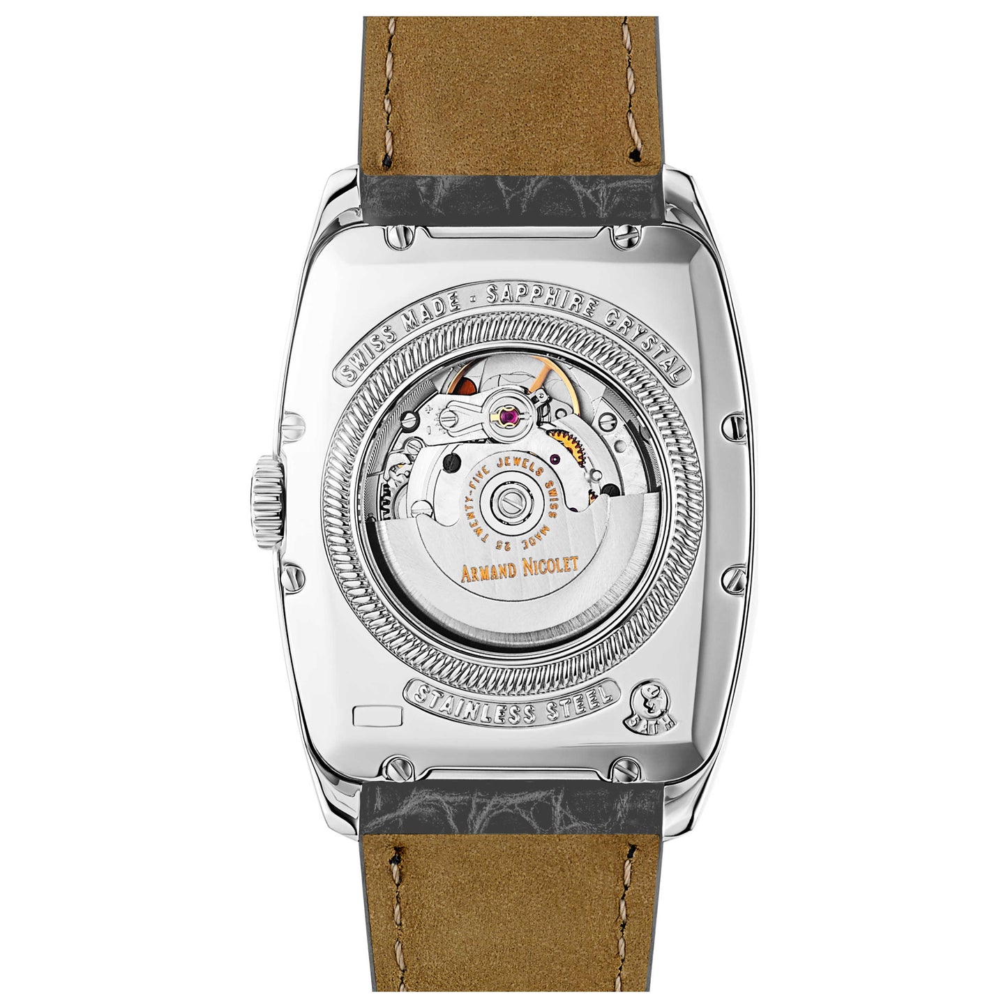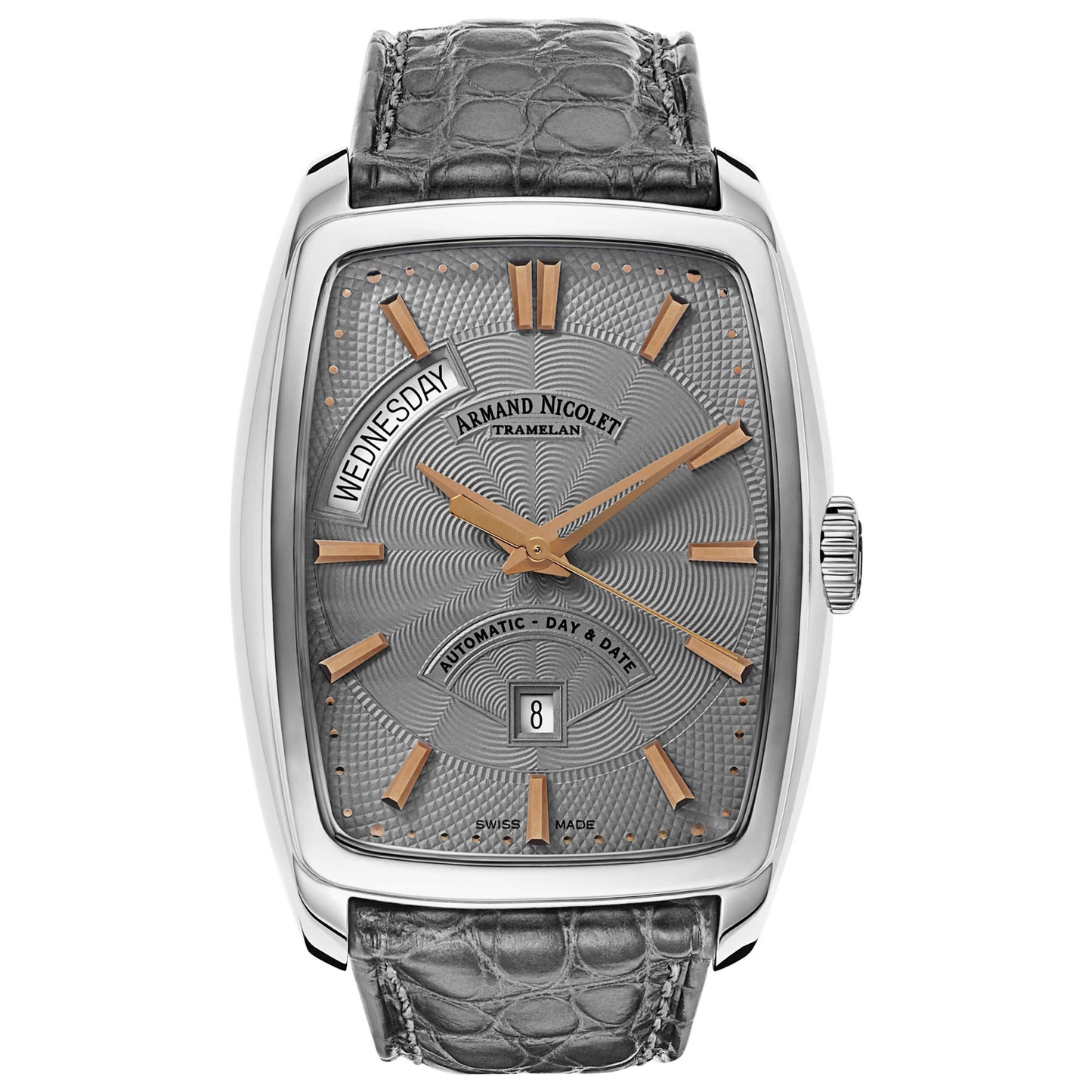 Armand Nicolet, TM7, Men's Watch, Stainless Steel Case, Leather Alligator Strap, Swiss Mechanical Automatic (Self-Winding), 9636A-GS-P968GR3