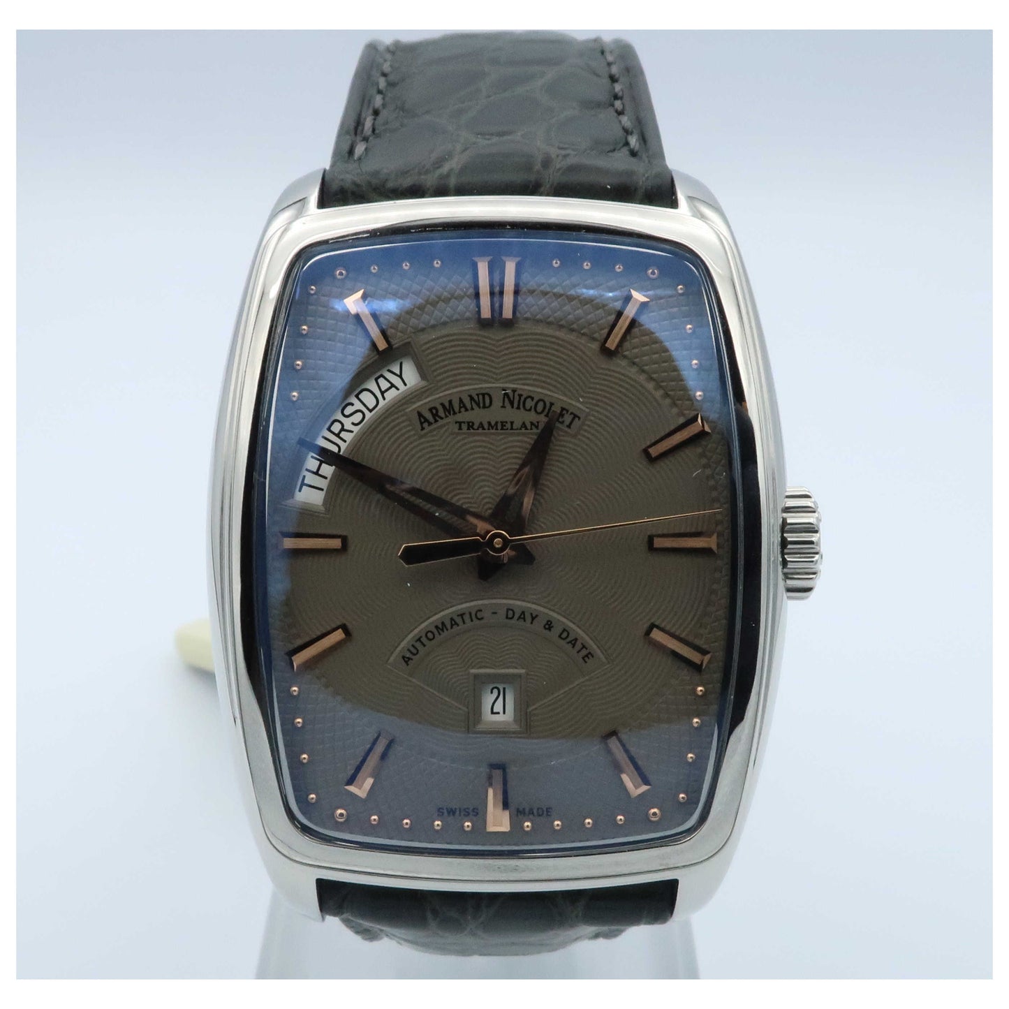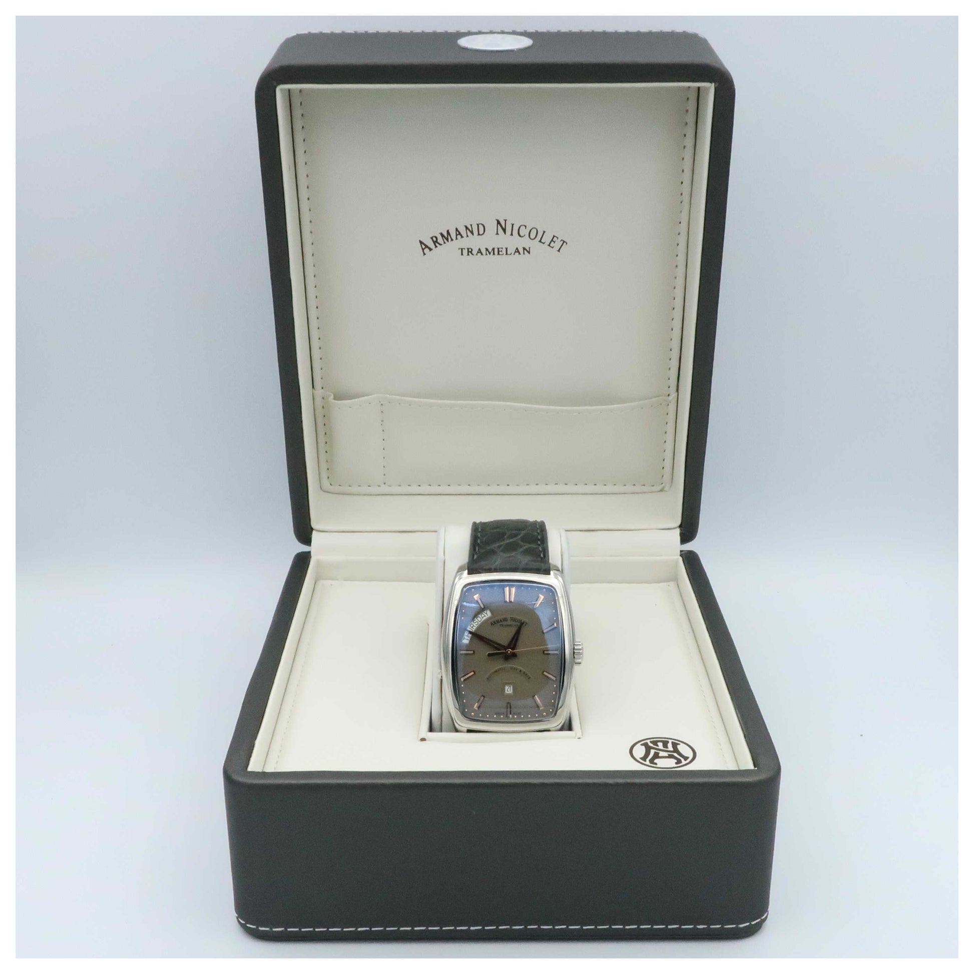 Armand Nicolet, TM7, Men's Watch, Stainless Steel Case, Leather Alligator Strap, Swiss Mechanical Automatic (Self-Winding), 9636A-GS-P968GR3-SD