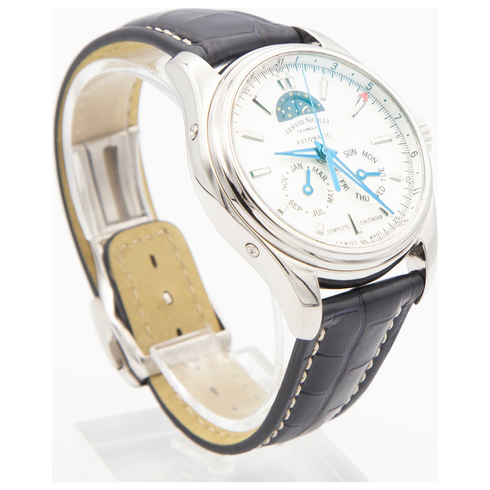 Armand Nicolet, M02 Complete Calendar, Men's Watch, Stainless Steel Case, Leather Alligator Strap, Automatic, 9642B-2AGP974MR2-SDV