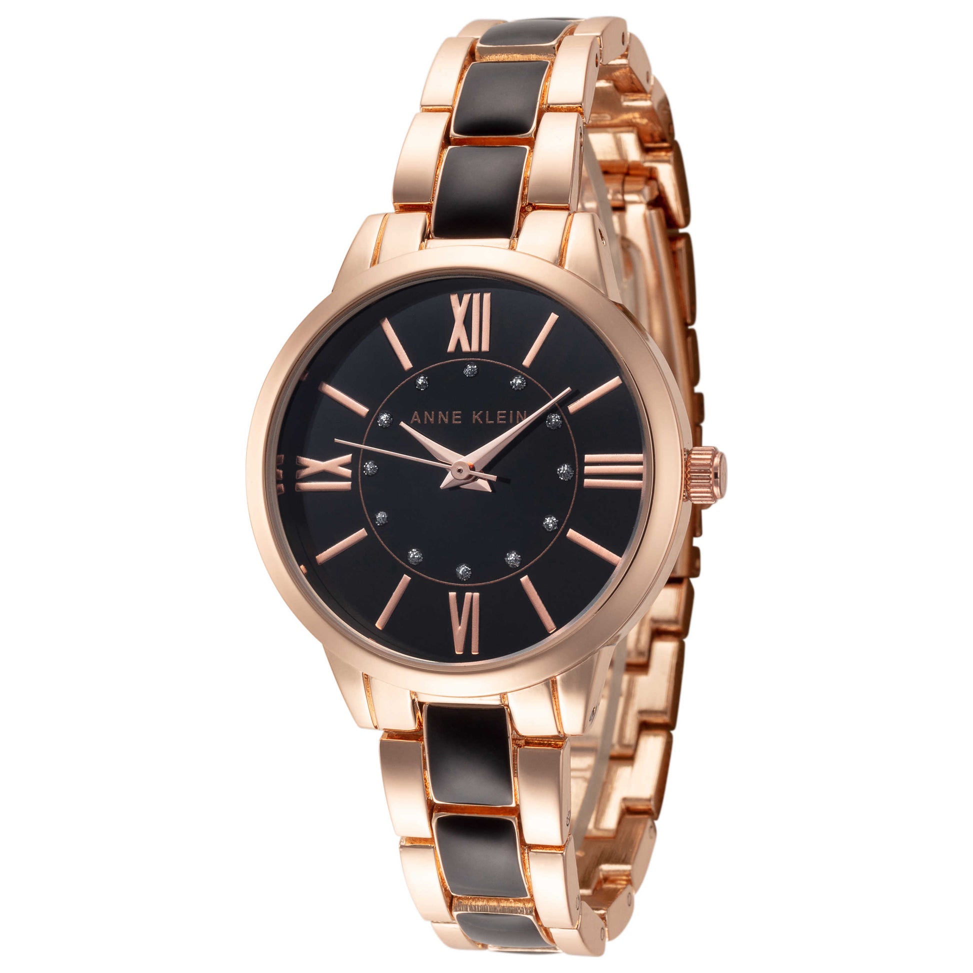 Anne Klein, Fashion, Women's Watch, Alloy Case, Base Metal and Enamel Bracelet, Quartz, AK-3666BKRG