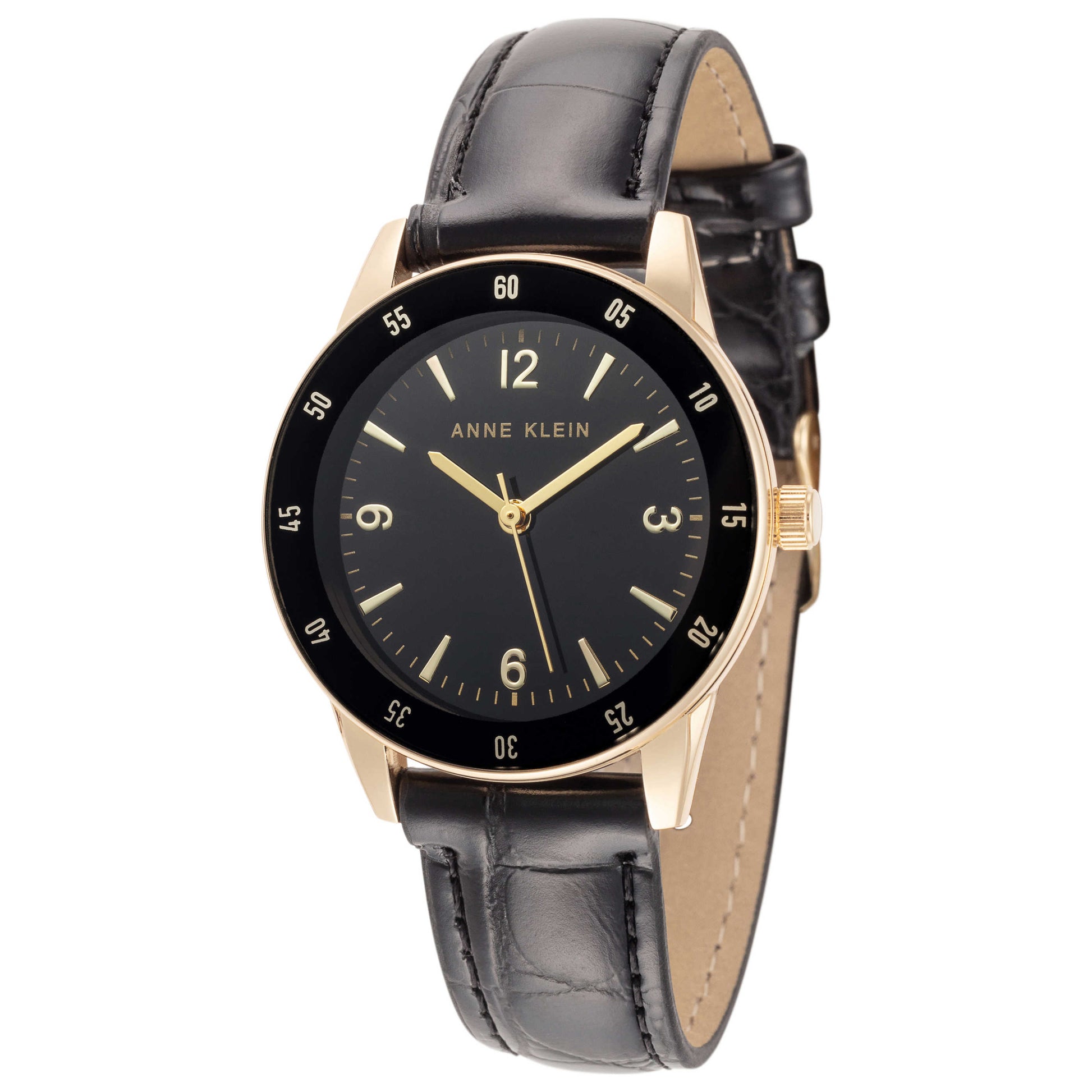 Anne Klein, Coco Grain, Women's Watch, Alloy Case, Leather Strap, Quartz, AK-3706GPBK