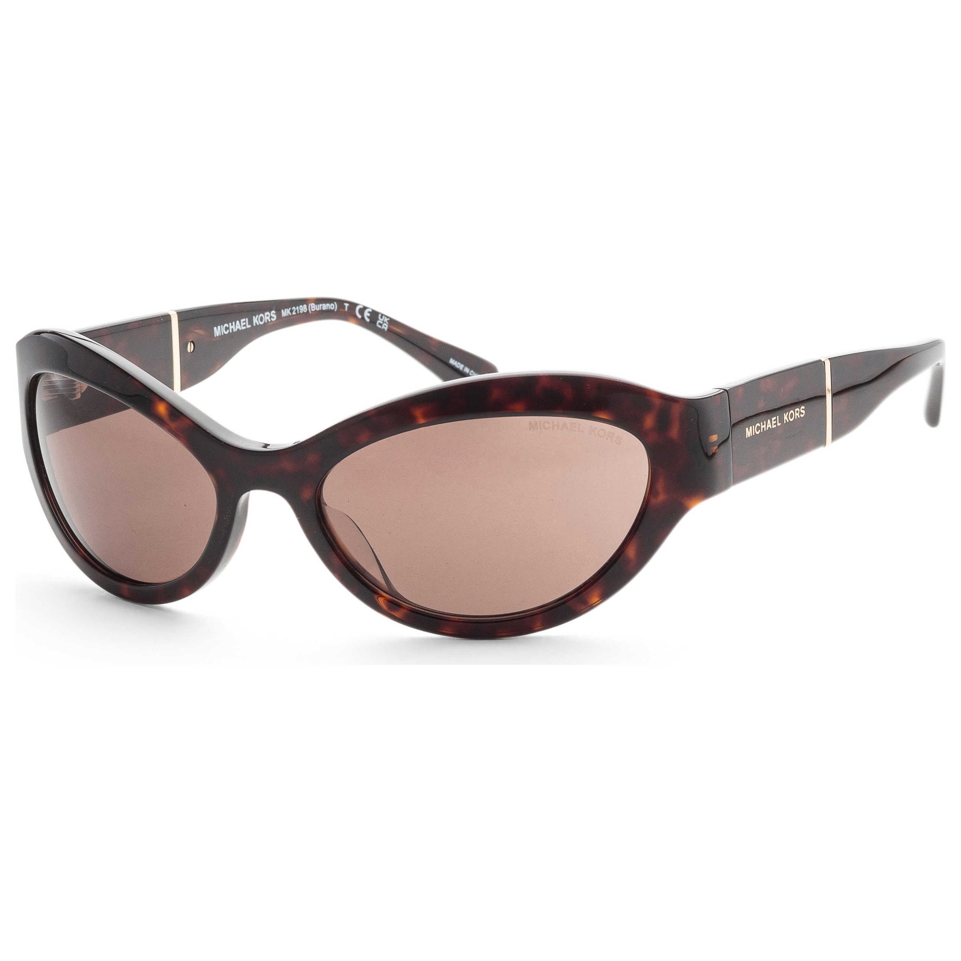 Experience effortless elegance with the Michael Kors Burano collection women's sunglasses. These exquisite oval frames, skillfully crafted from durable acetate, flaunt a sophisticated dark tortoise color that complements the brown lenses with 100% UV protection. With a generous 59mm lens width, the Burano sunglasses blend comfort, style, and optimal vision clarity for a stunning fashion statement. MK2198-300673-59