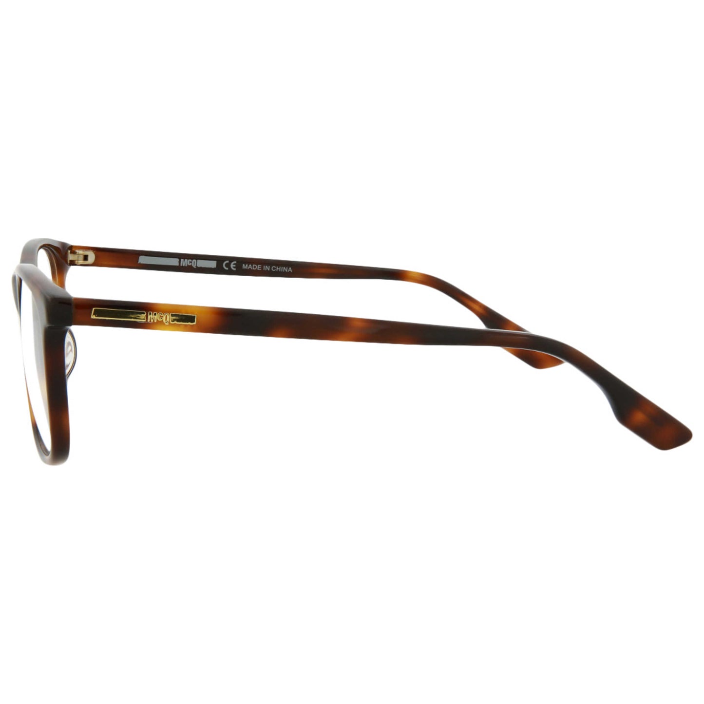 For the contemporary, stylish individual, try Alexander McQueen's McQ opticals. Boasting a 54mm lens width, set within a handsome brown acetate frame, these spectacles seamlessly blend form with function. MQ0101OA-30001788-002