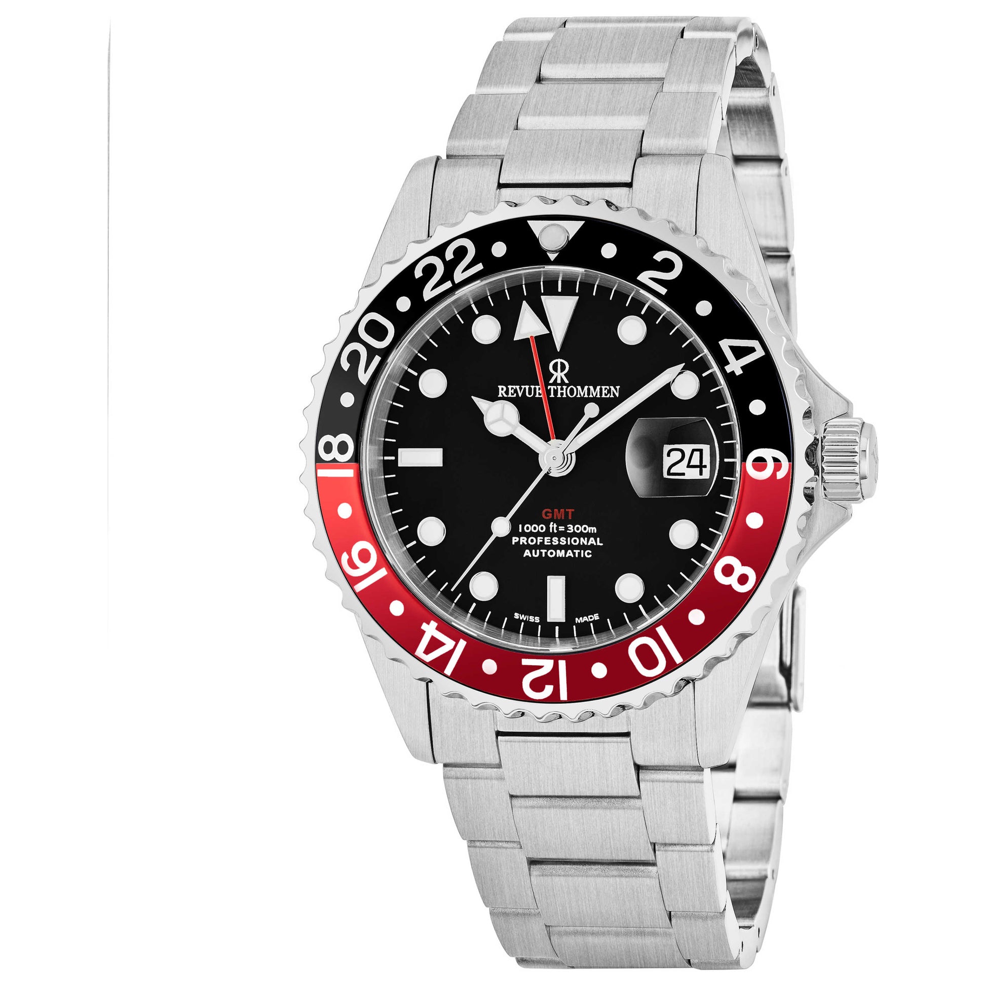 Experience Swiss craftsmanship with the Revue Thommen Diver watch, a robust choice for the discerning man. This automatic Swiss-Made SW330-1/ C125 movement timepiece is encased in a round 42mm stainless steel case with a black dial under a scratch-resistant sapphire crystal. The case boasts a bi-directional bezel and a stunning water resistance of 300m (990 feet), perfect for deep diving adventures. This men's watch is elegantly presented on a silver stainless steel bracelet that fastens securely with a deployment clasp. With GMT and date features, this watch is the ideal companion for the modern explorer. 17572.2136